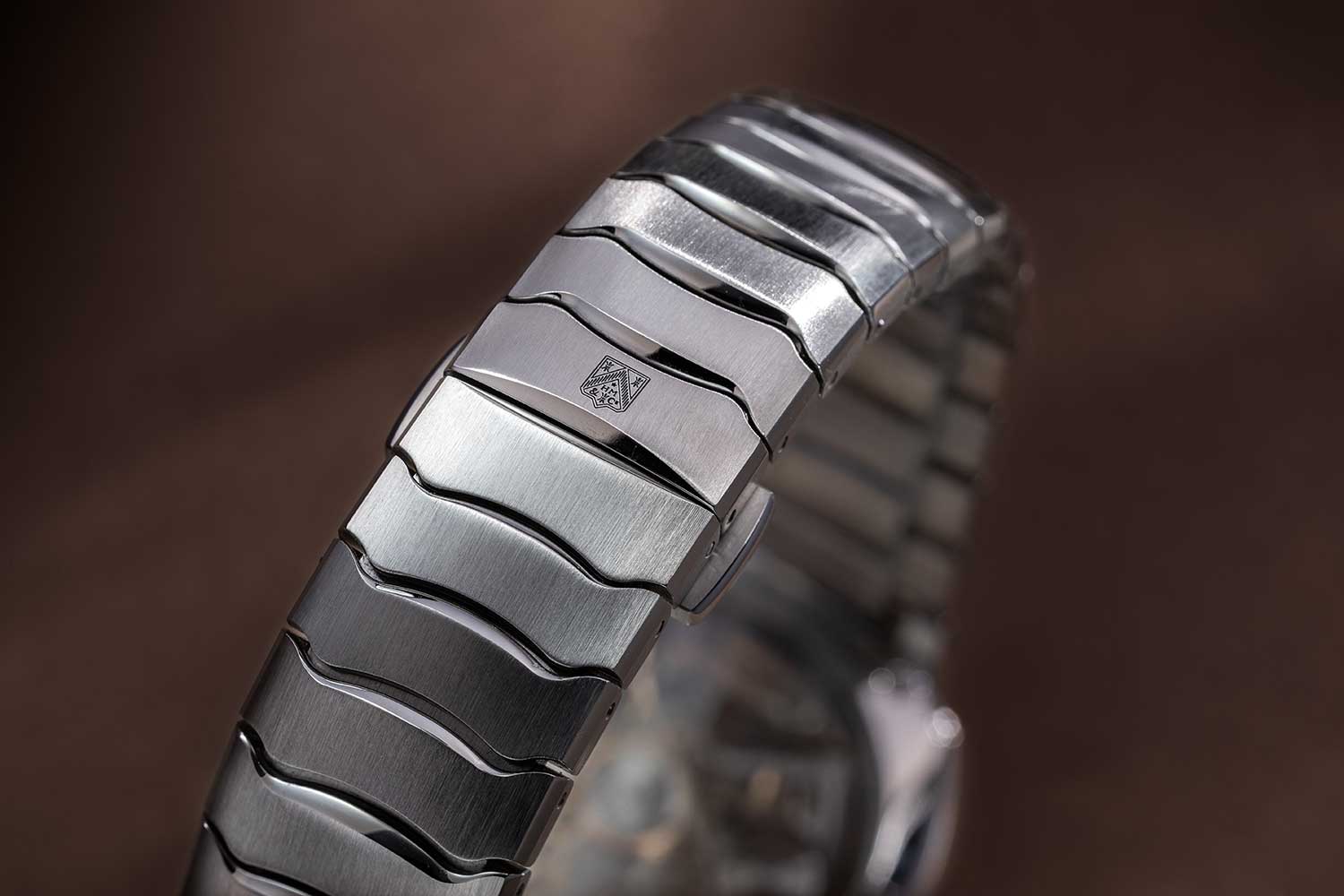 Despite its solid appearance, the bracelet is highly articulated and has a fluid feel, with short links that pivot freely and follow the natural curvature of the wrist. It is surprisingly comfortable even on smaller wrists.