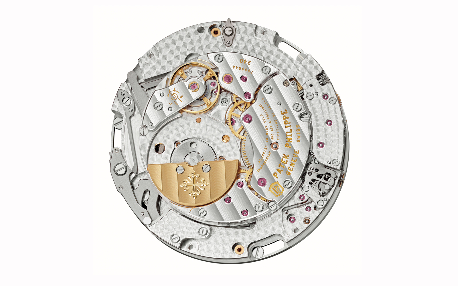 Movement Self-winding Caliber 240 C LU CL LCSO; 38–48h power reserve; 3 Hz (21,600 vph); 22K gold mini-rotor, unidirectional winding; Gyromax balance; Patek Philippe Seal