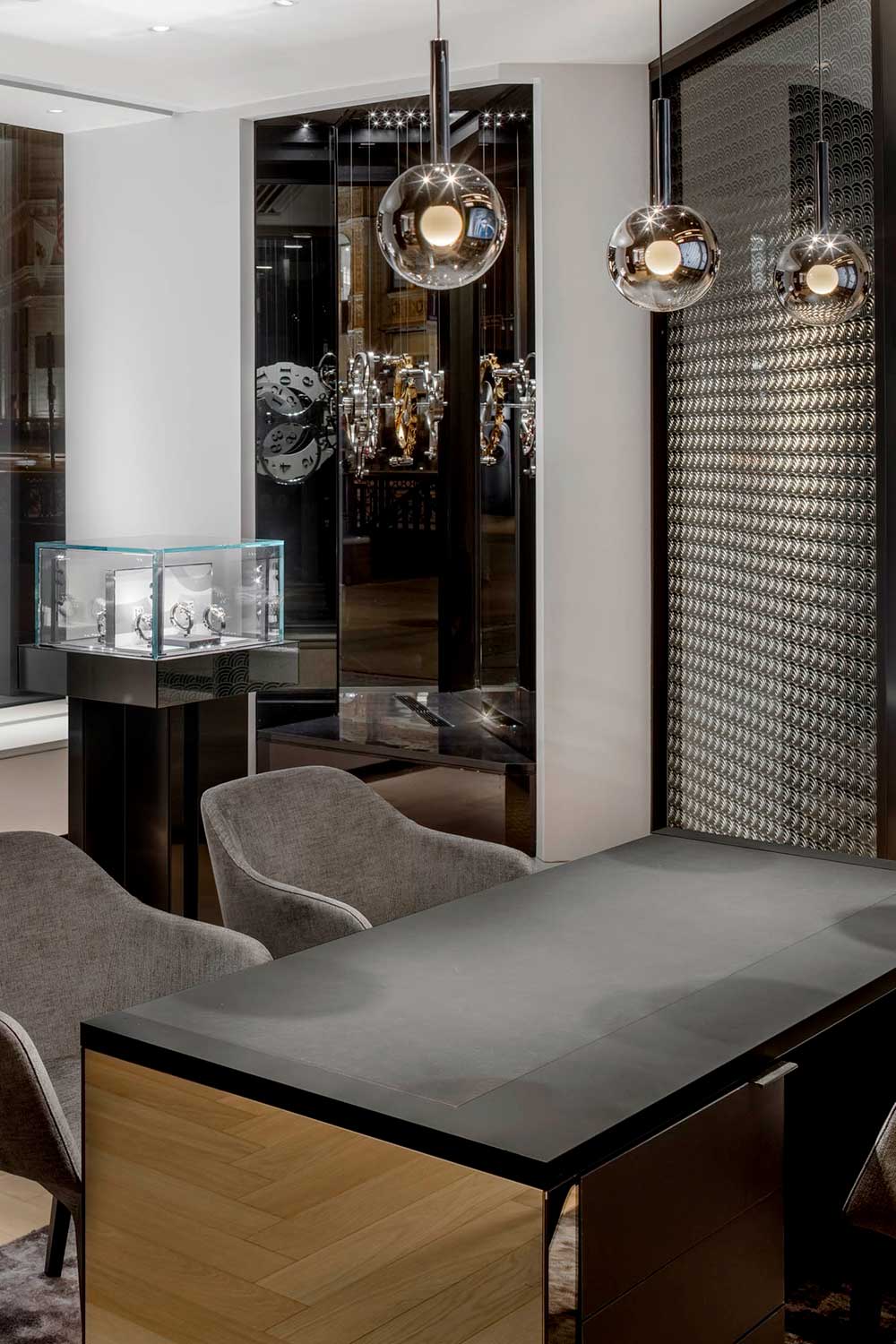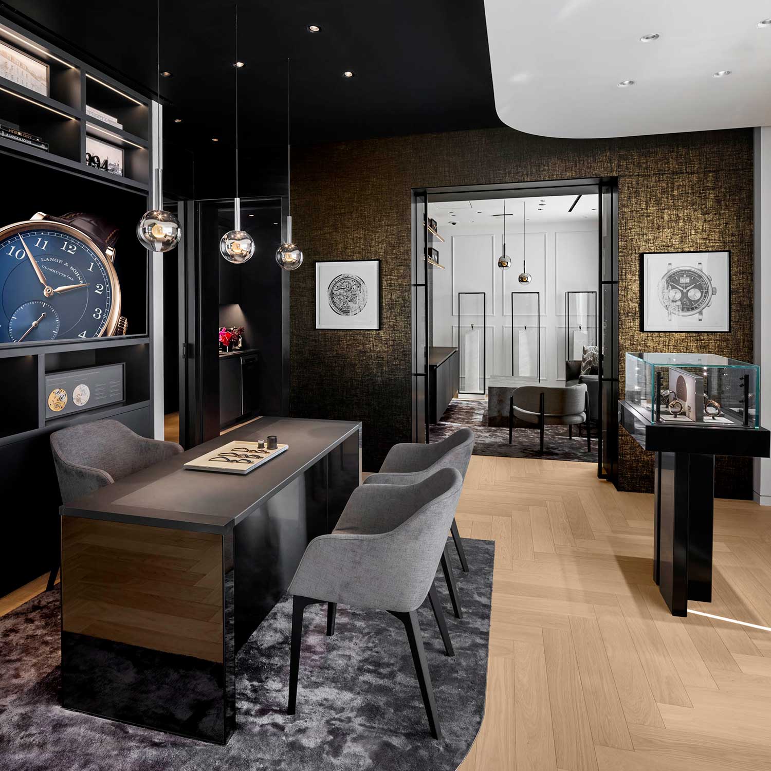 Spanning 1,409 square feet, the boutique has been designed to encourage the kind of unhurried engagement Lange believes its watches deserve. Three distinct client seating areas, including two private lounges, create an environment for close inspection, extended conversation and time spent with the watches both on and off the wrist.