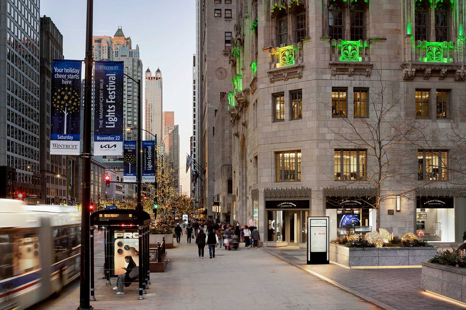 The choice of Tribune Tower adds a further layer of resonance. The building was completed in 1925 and was once the headquarters of the Pulitzer Prize-winning Chicago Tribune. The façade incorporates nearly 150 fragments of historically significant architecture gathered from around the world, including a piece of the Berlin Wall that was added in 1990.