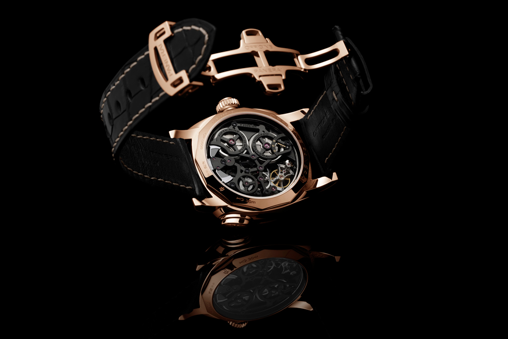 Introducing the Radiomir 1940 Minute Repeater Carillon Tourbillon GMT, a new decimal minute repeater with the capability of chiming out both local time and home time, and switch between the two – instantly.