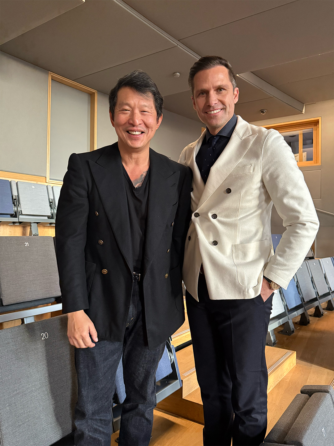 A behind-the-scene moment during the Paris presentation with Wei Koh and Gregory Kissling, CEO of Breguet