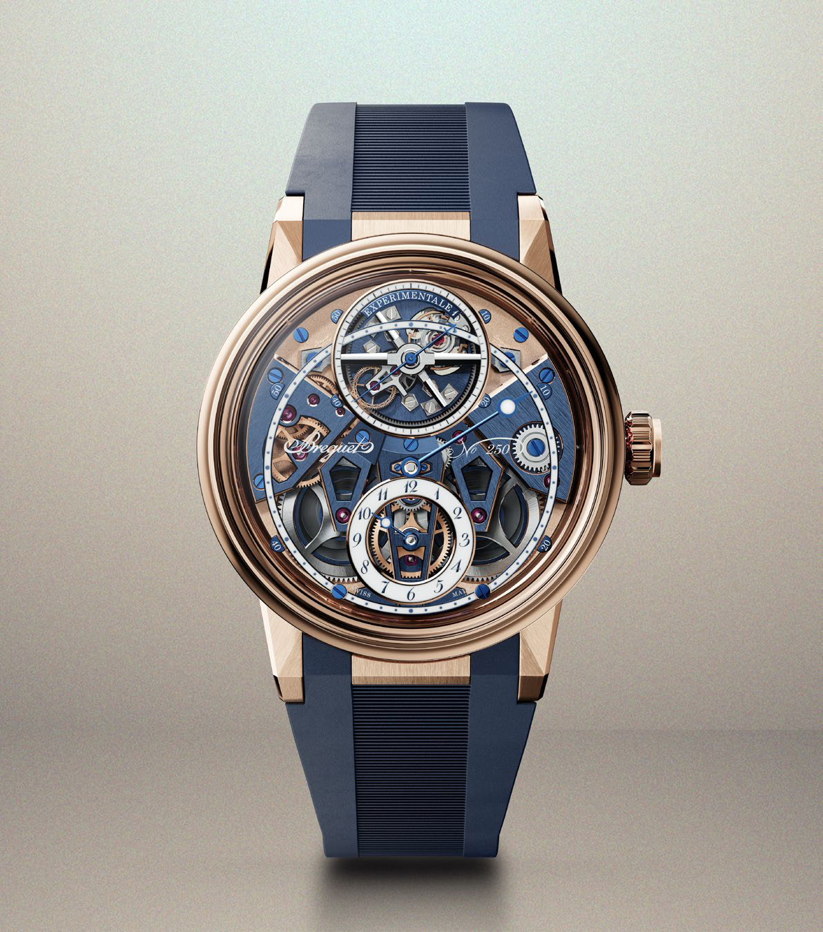Breguet Expérimentale 1 — the world’s first magnetic-escapement tourbillon, showcased in a rose-gold case with a fully skeletonized movement