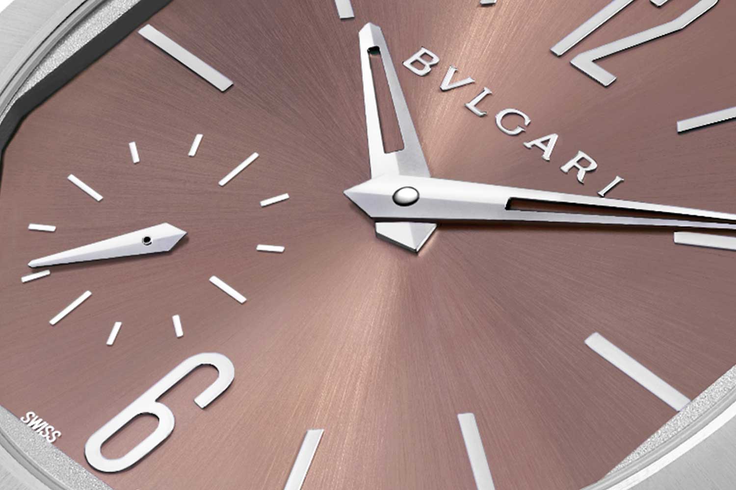 The rosy, salmon-esque hue of the dial, while certainly a desirable choice for many watch collectors, but is not a color that Bulgari has a habit of utilizing in its timing pieces. Despite an ever growing demand and seemingly unrelenting trend of watchmakers utilizing similar hues, Bulgari reserved such a treatment for the right time and place. Evidently, that time is now and the place will be the North American market, exclusively.