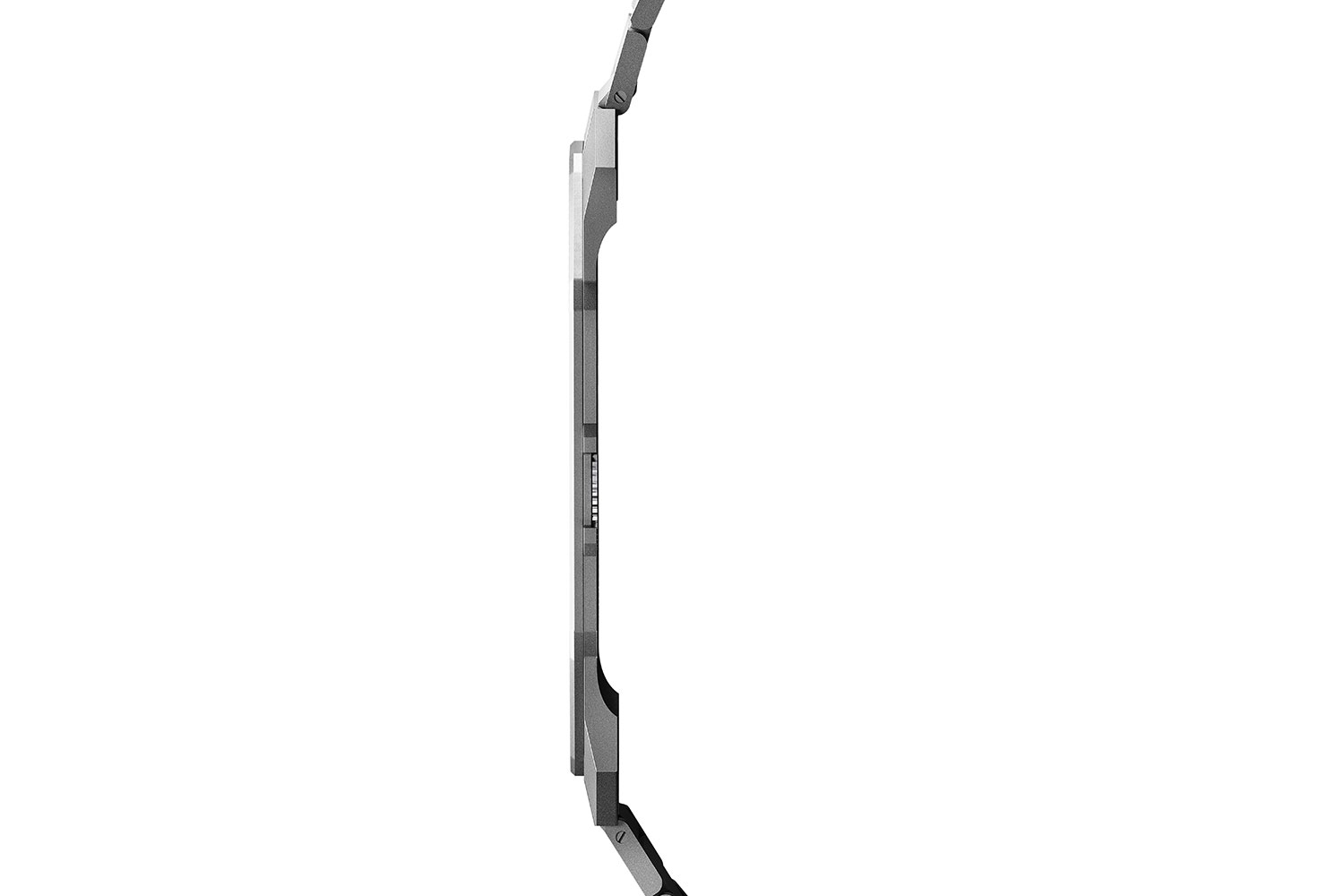 Strap: Sandblasted titanium bracelet with integrated folding buckle; 1.5mm thin