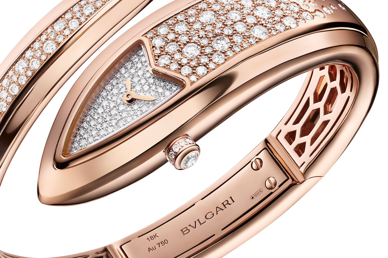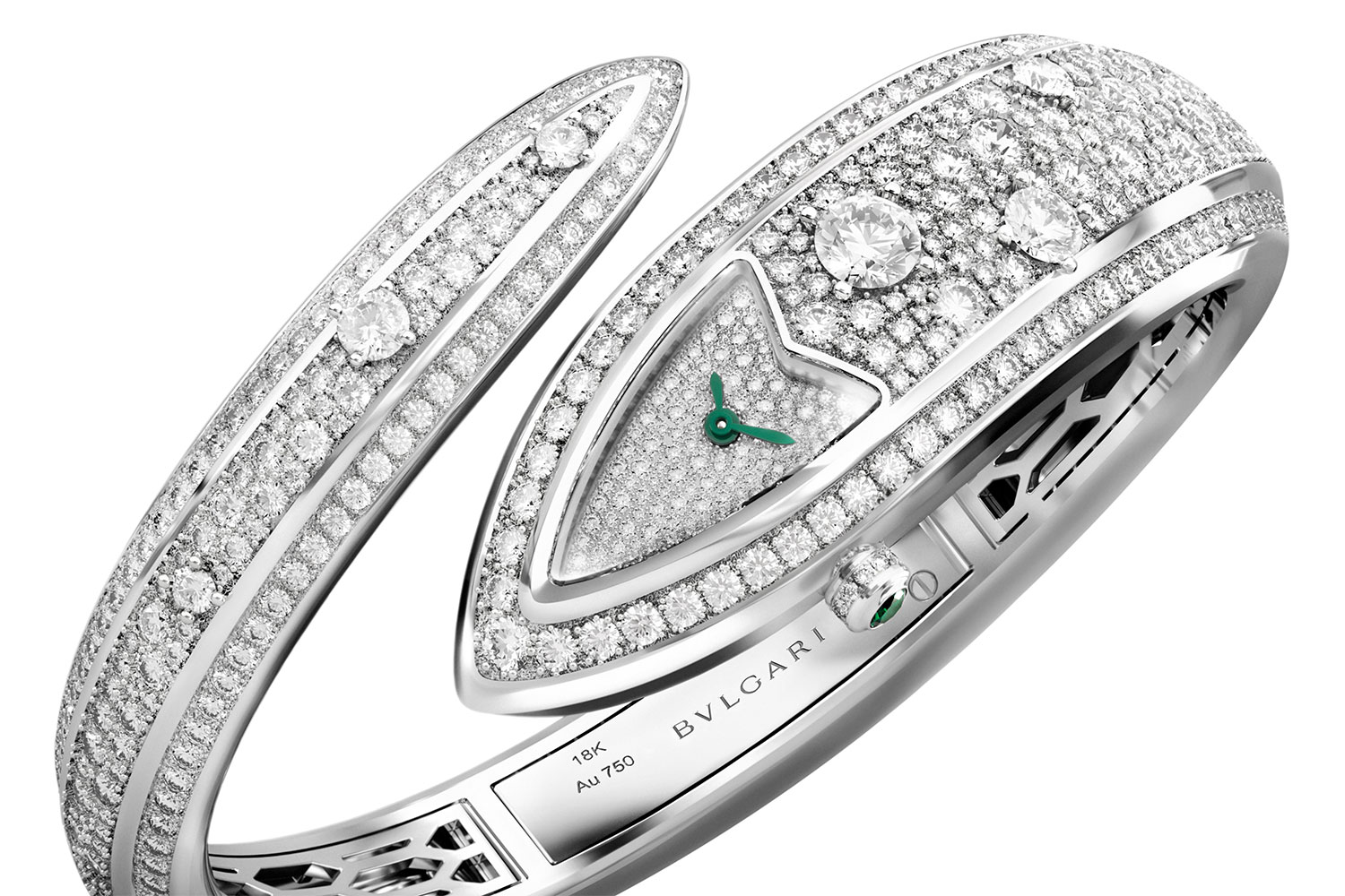 For a more high jewelry interpretation, the Serpenti Aeterna White Gold takes it up a notch with a diamond-pavé case, bracelet, and bezel, the latter in this case referring to the Aeterna’s bold outline that runs from tip to tail.