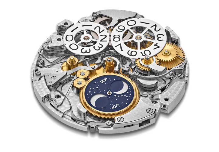 Functions: Perpetual calendar, day/night, double moon phase display, hours and minutes