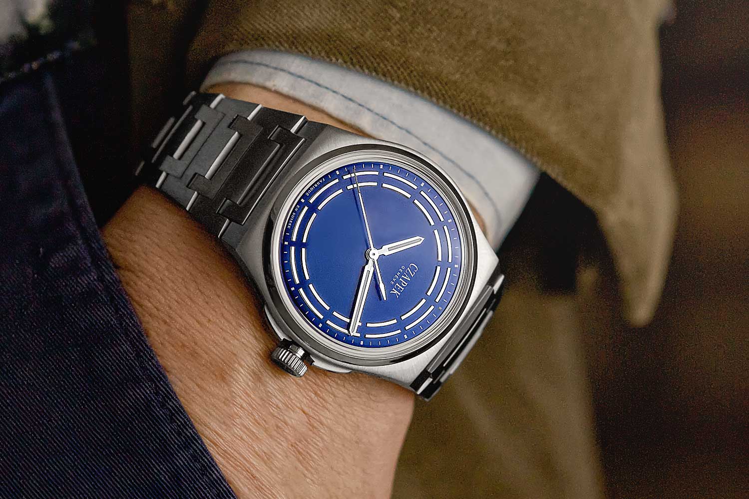 Where the Dark Sector leans into graphic clarity, the Révélation is driven by Czapek’s fascination with exposing the beauty of mechanics. Built around Calibre SXH7, a thorough reinterpretation of SXH5, the movement was re-engineered to reveal on the dial side what is normally hidden from view, including a reversed escapement and the activation of the stop-seconds mechanism when setting the time. The architecture is fully skeletonised, creating a trompe l’oeil effect of multiple bridges while opening up the movement as much as possible without sacrificing legibility. That balance is reinforced here by the peripheral Cosmic Blue display, which creates a strong visual frame around the indications, while a smoked sapphire sub-dial carries the small seconds at 4:30. The Révélation Titanium Cosmic Blue is offered in both 40.5mm and 38.5mm formats, with annual production capped at 50 and 25 pieces respectively.
