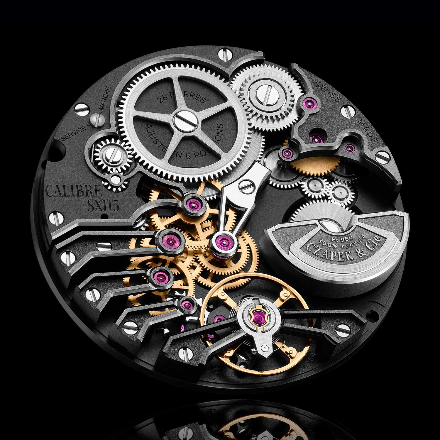 Movement Self-winding in-house Calibre SXH5; bi-directional winding recycled 950 platinum micro-rotor; frequency of 4 Hz or 28,800 vph; 60-hour power reserve