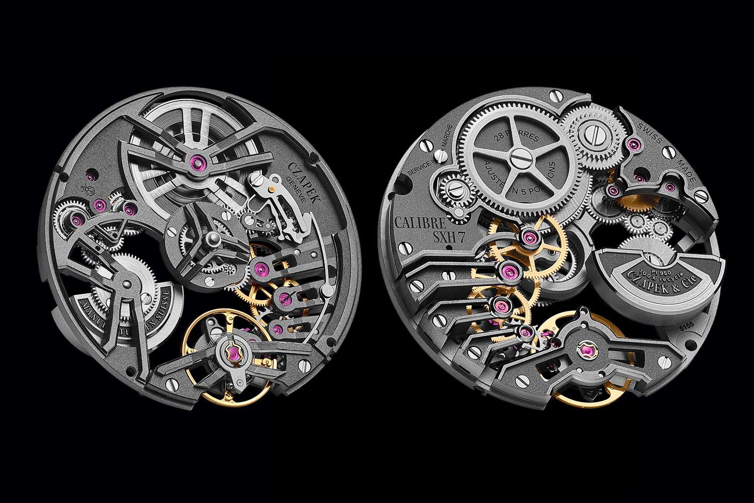 Movement Self-winding in-house Calibre SXH7; re-engineered and skeletonised reinterpretation of SXH5 with dial-side escapement and visible stop-seconds mechanism; 60-hour power reserve