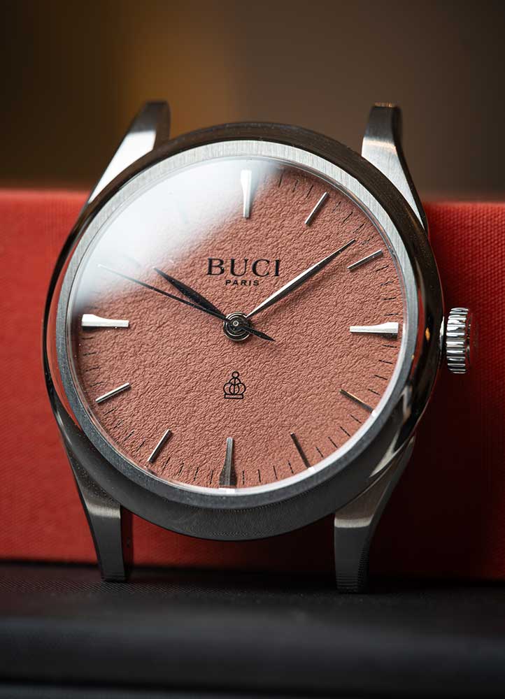 In 2016, disillusioned by the lack of timepieces that spoke to her aesthetic and emotional sensibilities, Baraket took a bold leap. She left her position at the Arab World Institute to chase her dream of creating watches that felt as profound as the words that had always been her constant companion. The result was BUCI Paris — minimalist, poetic timepieces that combine sleek, simple design with deeper meaning. Her first model, a 38mm piece with a paper-like dial and feuille hands, was born from this vision. Each watch also carries a literary quote, such as Apollinaire’s “When we have time, we have freedom” or Rumi’s “This moment is all there is” — a reflection of her belief that watches are more than instruments for measuring time; they’re tools for feeling it.