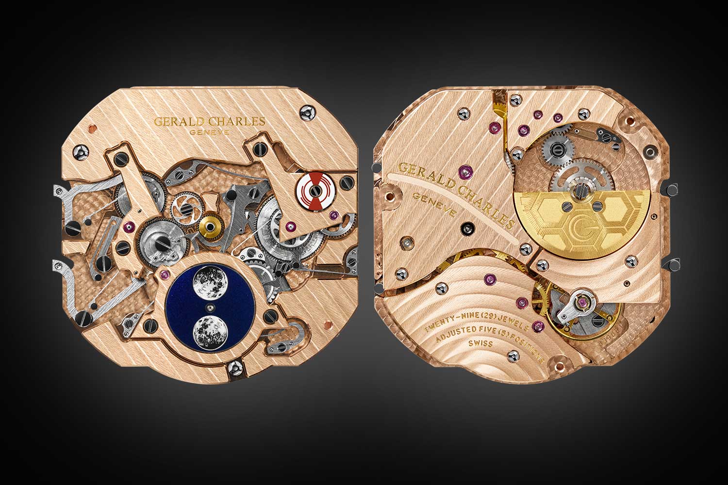 Movement Self-winding proprietary perpetual calendar movement developed by Gerald Charles; 50-hour power reserve