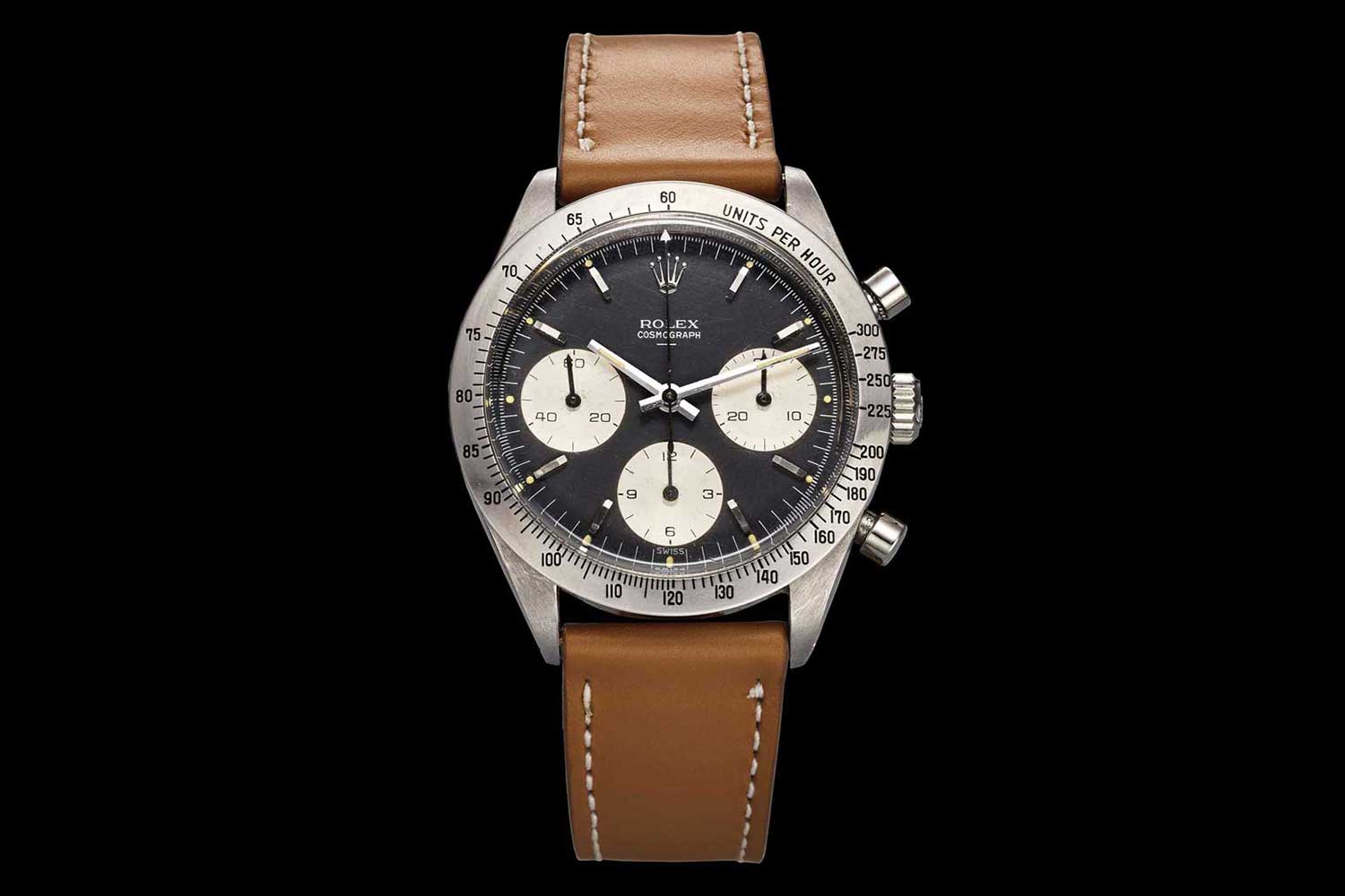 The generally held belief is that around this time Paul Newman was spotted either on the cover or prominently featured inside a widely-read magazine or other wearing the ref. 6239 with the “exotic dial” – the very watch we are offering on 26 October, in New York. Astute dealers immediately nicknamed vintage Daytonas fitted with this style of dial, the Paul Newman Daytona. The name “stuck”, and it is this association with Paul Newman that led to the Daytona becoming one of the world’s most sought after and collectible watches.