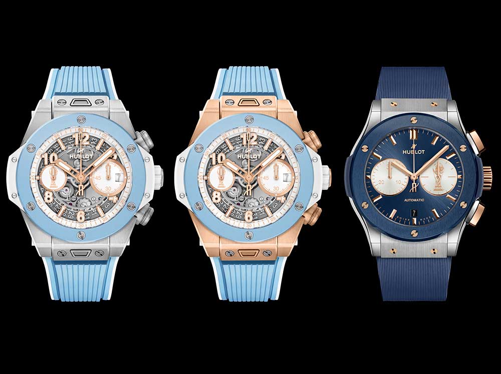 The standout for me is the Big Bang Unico King Gold. Clocking in at 42 mm in diameter, the ceramic bezel is in the aforementioned sky blue of the official jersey of the AFA — the Albiceleste. The shade is also picked up on the rubber strap. The case and pushers are made of King Gold, Hublot’s proprietary alloy which promises a warmer hue than 5N gold. The same essential theme is picked up on the titanium model, except the case material is (obviously) titanium.