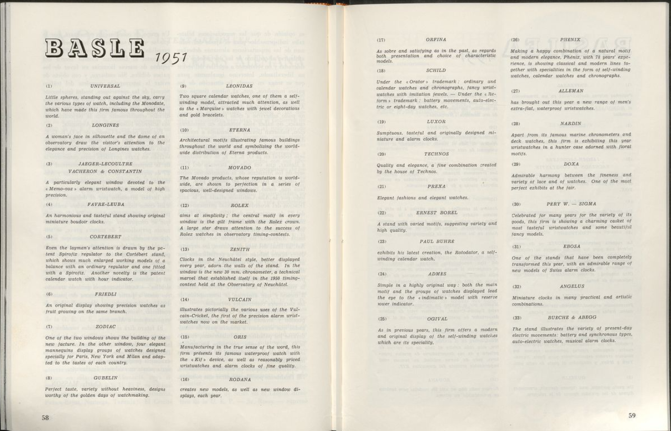 - Basel Fair 1951 catalogue page featuring Favre Leuba among its Swiss contemporaries