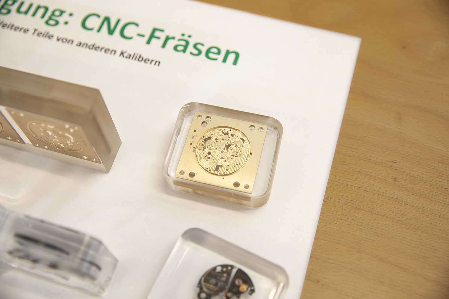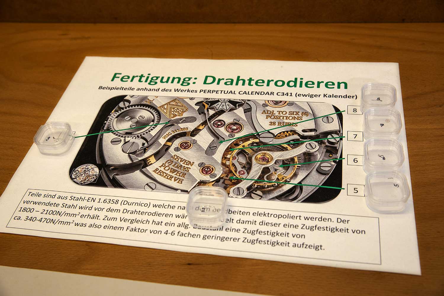 A didactic board illustrating the use of wire electrical discharge machining for ultra-thin steel components in the Perpetual Calendar calibre 341