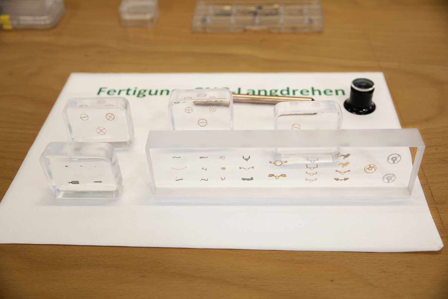 The four spirals are then separated from one another by vibration, meaning placed in a transparent case and simply shaken. This detaches the individual springs from the stacked configuration without deforming the coils.
