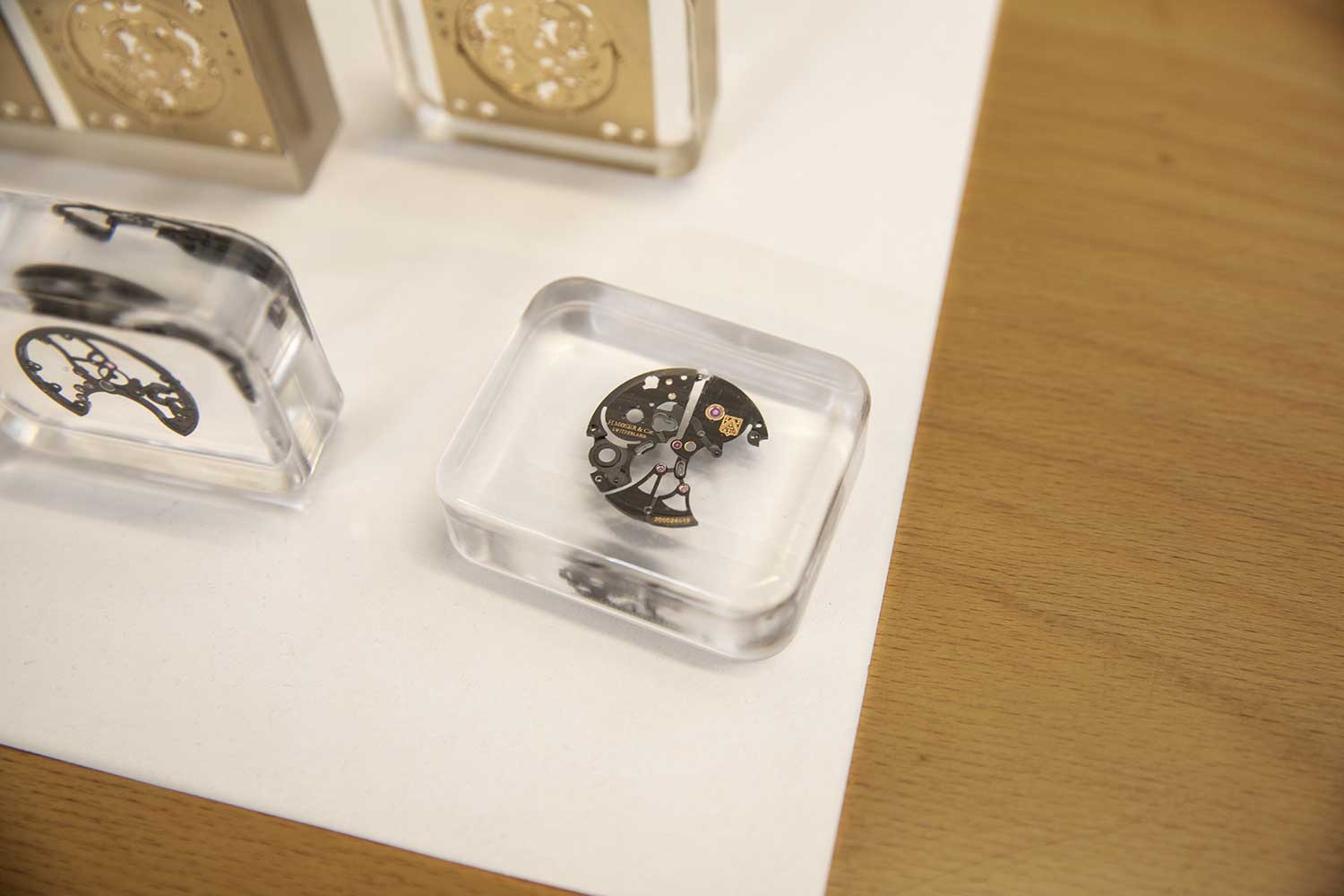 A variety of oscillators produced at Precision Engineering, along with Moser’s signature modular escapement, which allows the entire regulating organ to be assembled and adjusted independently before being installed into the movement, reducing time spent in service