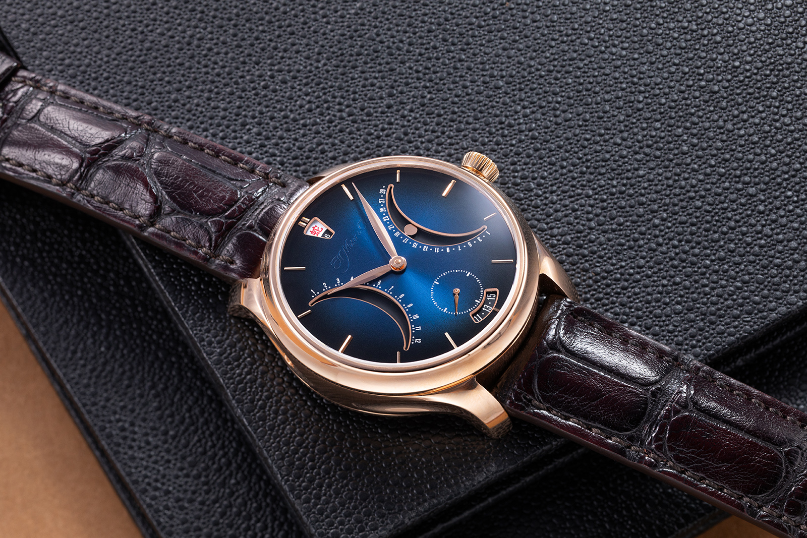 In 2023, however, MELB Luxe acquired a stake in Agenhor, a move that gives the group direct, long-term access to one of the most inventive complication ateliers in watchmaking. This allows complex mechanisms to be developed in closer dialogue with Moser’s own engineers and watchmakers. The first complication they undertook was the ingenious double retrograde Chinese Calendar, before turning their attention to a more accessible offering in the form of the Pioneer Retrograde.