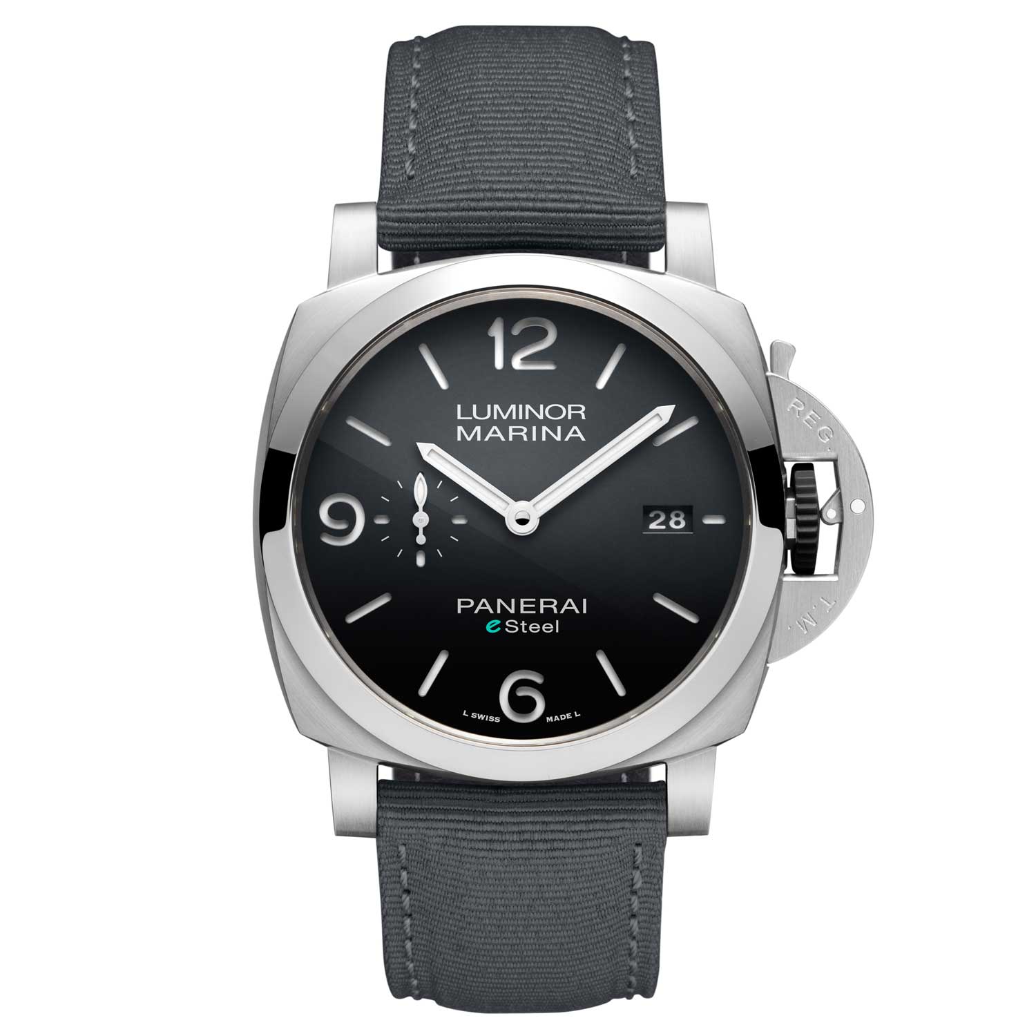 The Luminor Marina eSteel uses a recycled-based steel alloy to make its cases and dials.