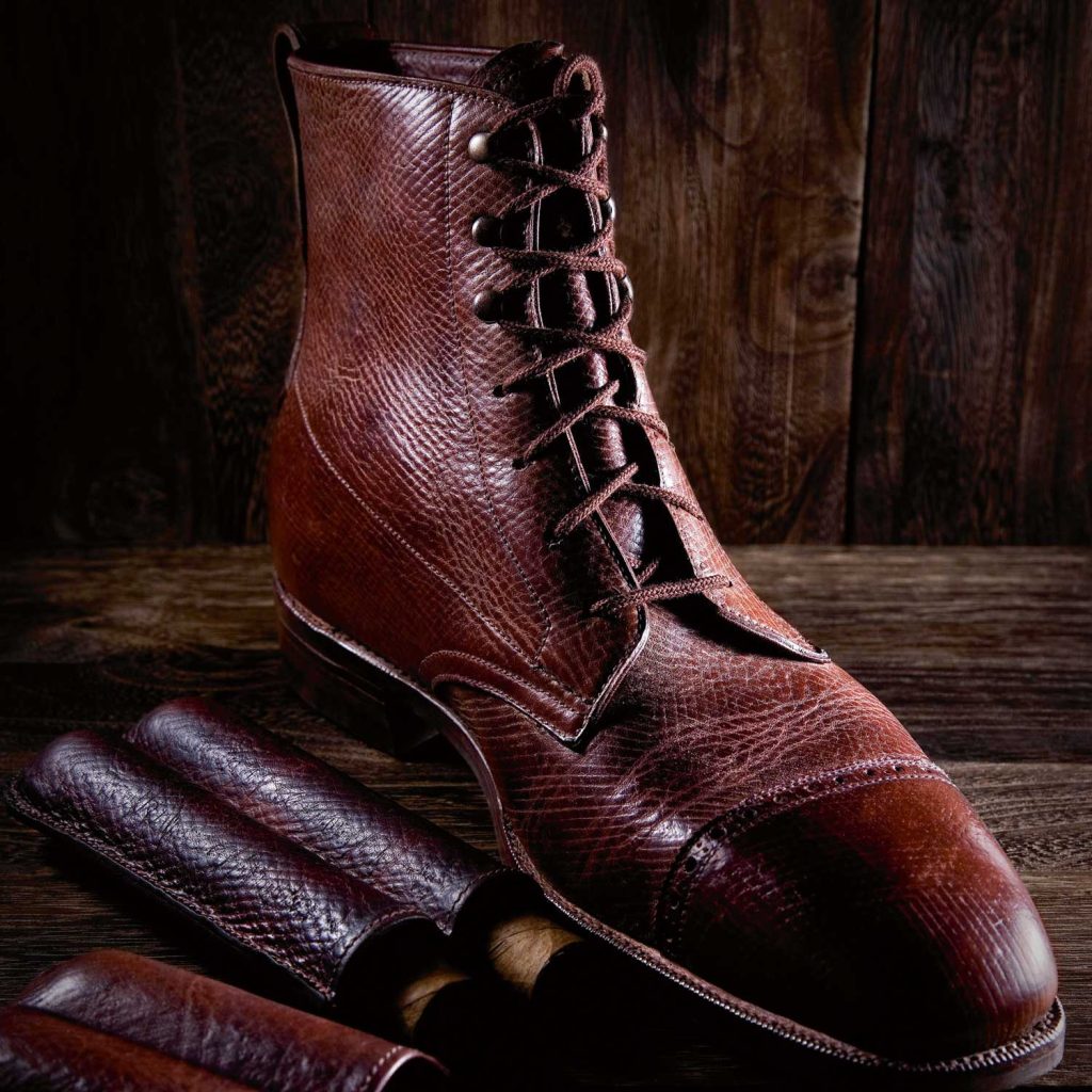 A pair of George Cleverley boots, belonging to the author and made from the same reindeer hide as the strap on the IWC Pilot’s Watch Automatic 36 Special Edition for The Rake & Revolution