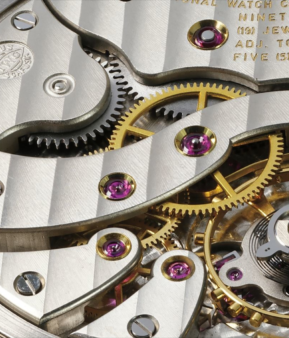 Over the course of IWC’s history just 690 reference 325 Portuguese watches were made and they later became the object of frenzied collectability. All watches were characterized by a 41.5 mm in diameter three-part case. There was no one specific dial associated with the Portuguese but rather a selection of dials including a sector dial, or a plain dial with Arabic numerals and round minute markers known as the “Bauhaus” style. 304 version 1 watches were made between 1939 and 1951 using the stunningly decorated finger bridge caliber 74 pocket watch movement. 329 version 2 watches were made between 1944 and 1970 using the caliber 98 pocket watch movement.