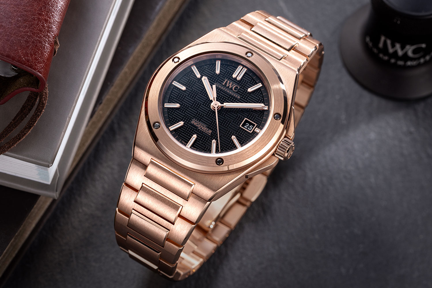 Meanwhile the Ingenieur 40mm, which was first introduced in 2023, is now presented in precious gold. The arrival of this model shows how IWC is jockeying for position in the category of luxury integrated-bracelet sports watches populated by the likes of Patek Philippe’s Nautilus, Audemars Piguet’s Royal Oak and Vacheron Constantin’s Overseas. But as an engineering brand, IWC has taken a markedly different route in terms of aesthetics, leaning away from any glittery showiness and opting for a style of finishing that favors simplicity and sobriety.