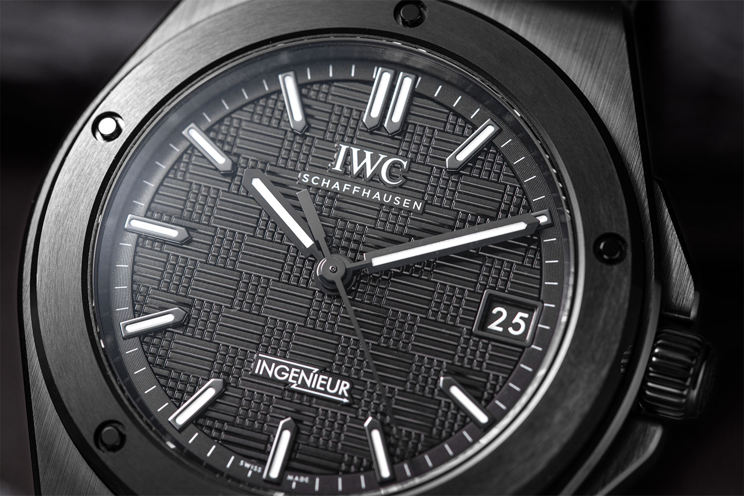 For the Ingenieur Automatic 42, IWC introduces an industry first by combining three distinct finishing techniques on zirconium oxide ceramic. Image: Revolution ©