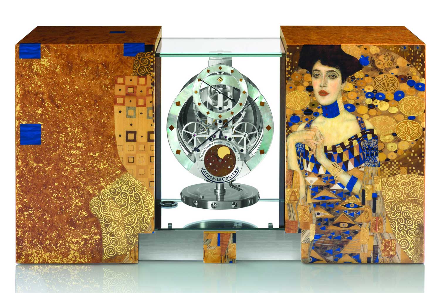 The Atmos Tellurium introduces a mesmerizing new astronomical calendar to the collection that accurately visualizes the revolution of the earth around the sun and captures the moonphases.