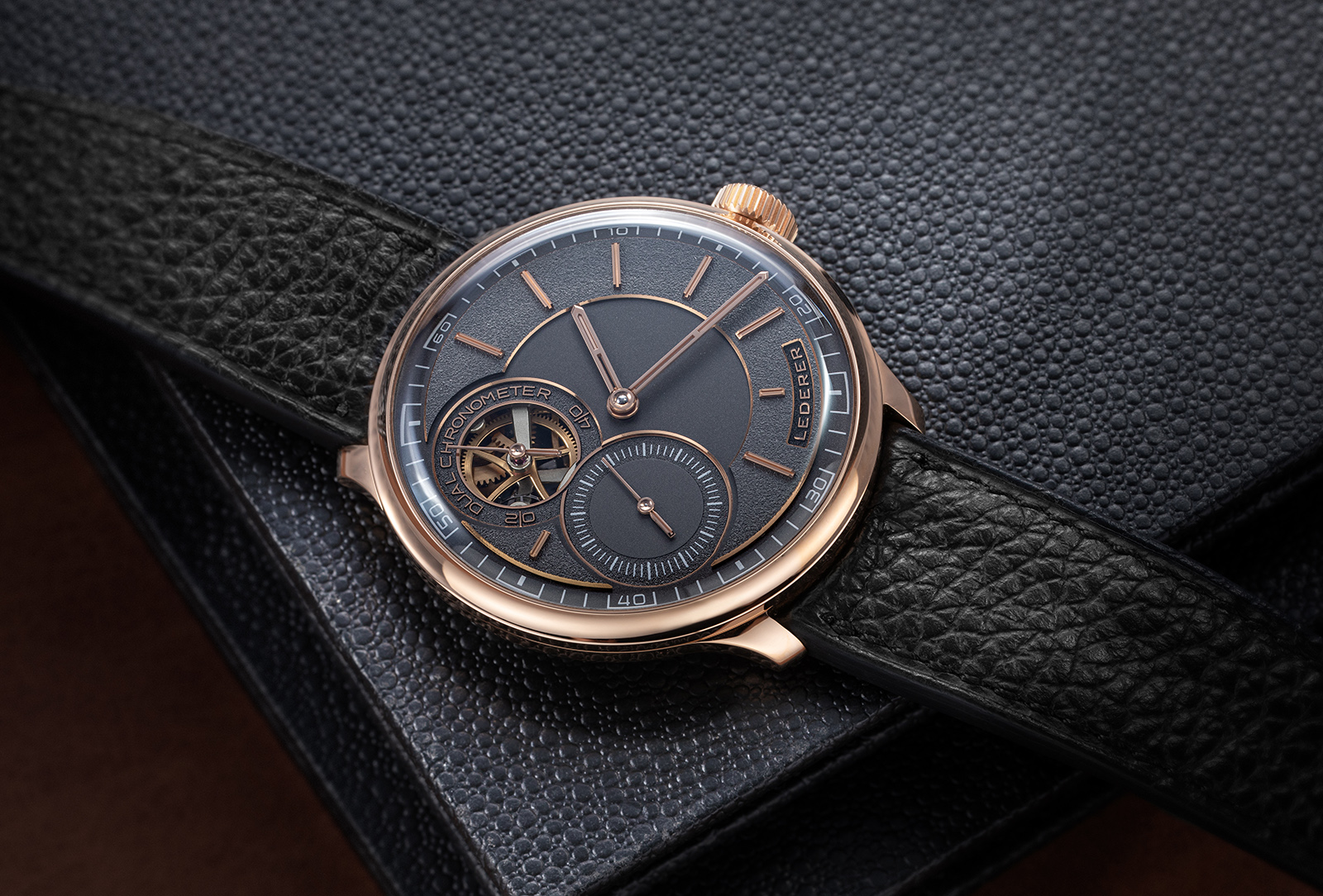 Movement Lederer inhouse, hand-wound movement with double detent escapement, two independent gear trains, two constant-force mechanisms and 38-hour power reserve