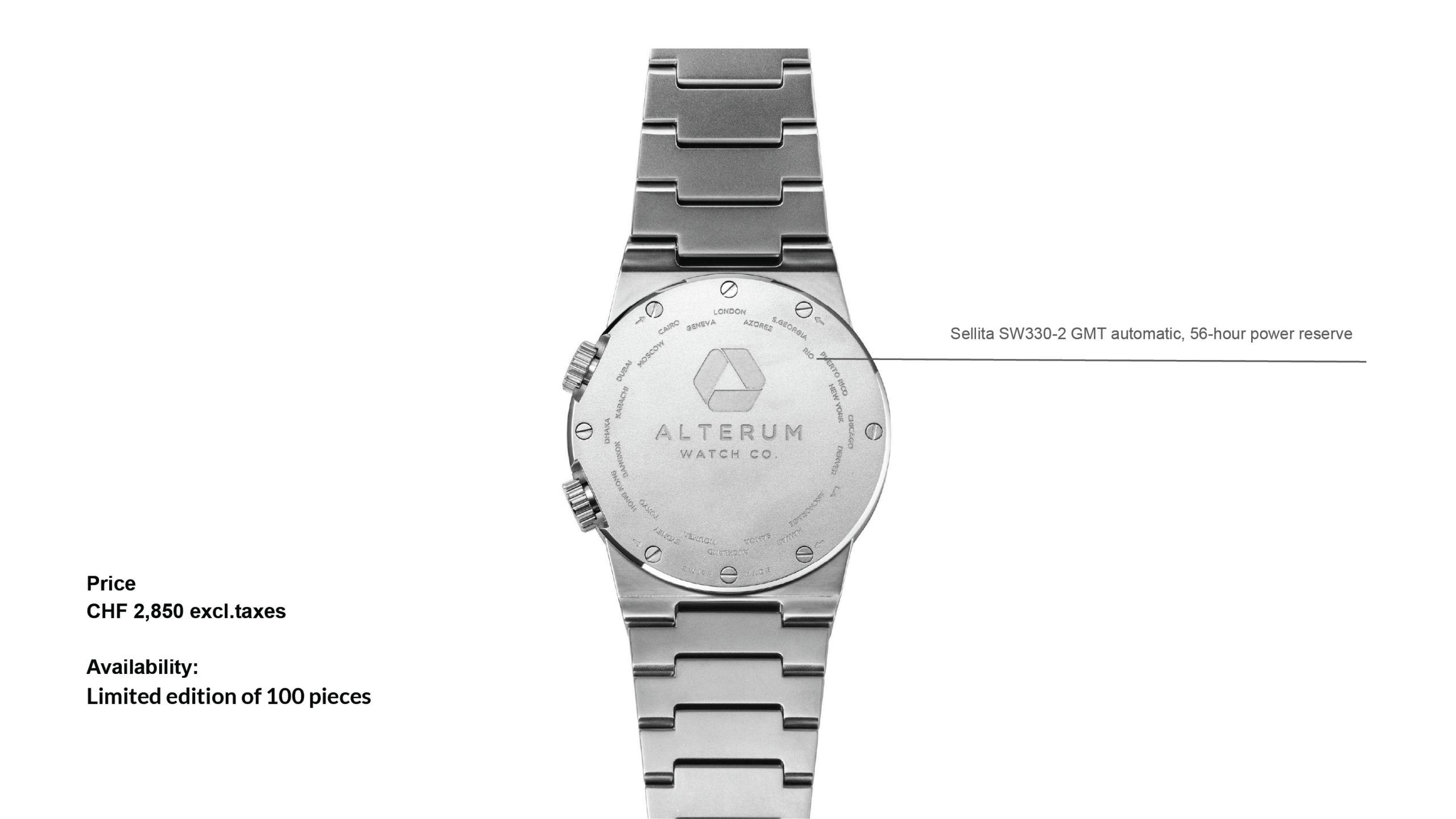 We are pleased to unveil its fourth and final iteration — Alterum Worldtimer Horizon. It is priced at CHF 2,850 excluding taxes, and limited to 100 pieces.