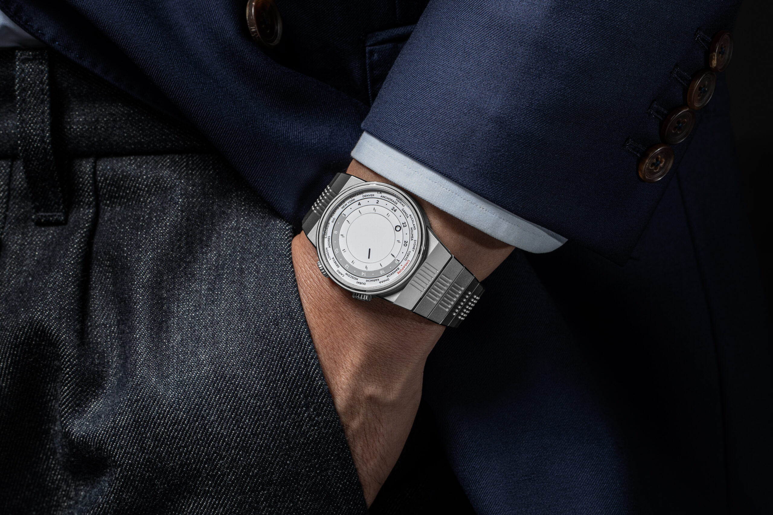 The result is a fresh, original-looking watch with a pared-back dial that does away with conventional hands.
