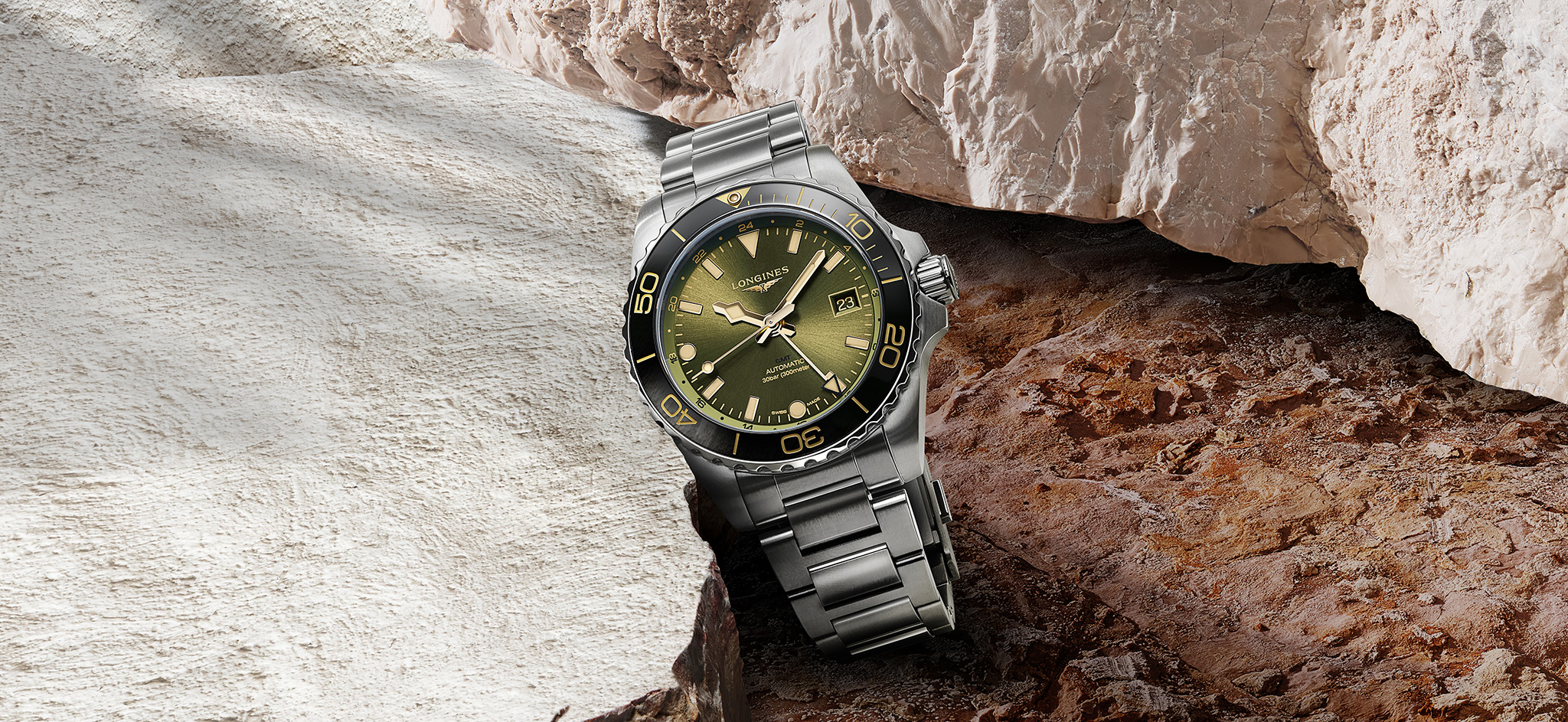 Longines HydroConquest GMT, khaki green nato with green dial