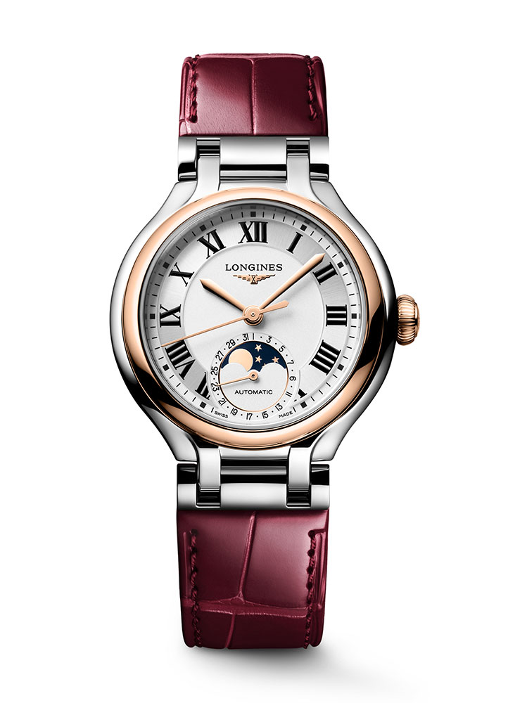 This year, Longines has unveiled a complete reimagining of the PrimaLuna, refining its case proportions — previous iterations leaned toward rounder, slightly bulkier profiles; the new case introduces refined proportions and softer domed surfaces — gem-setting, and complications.
