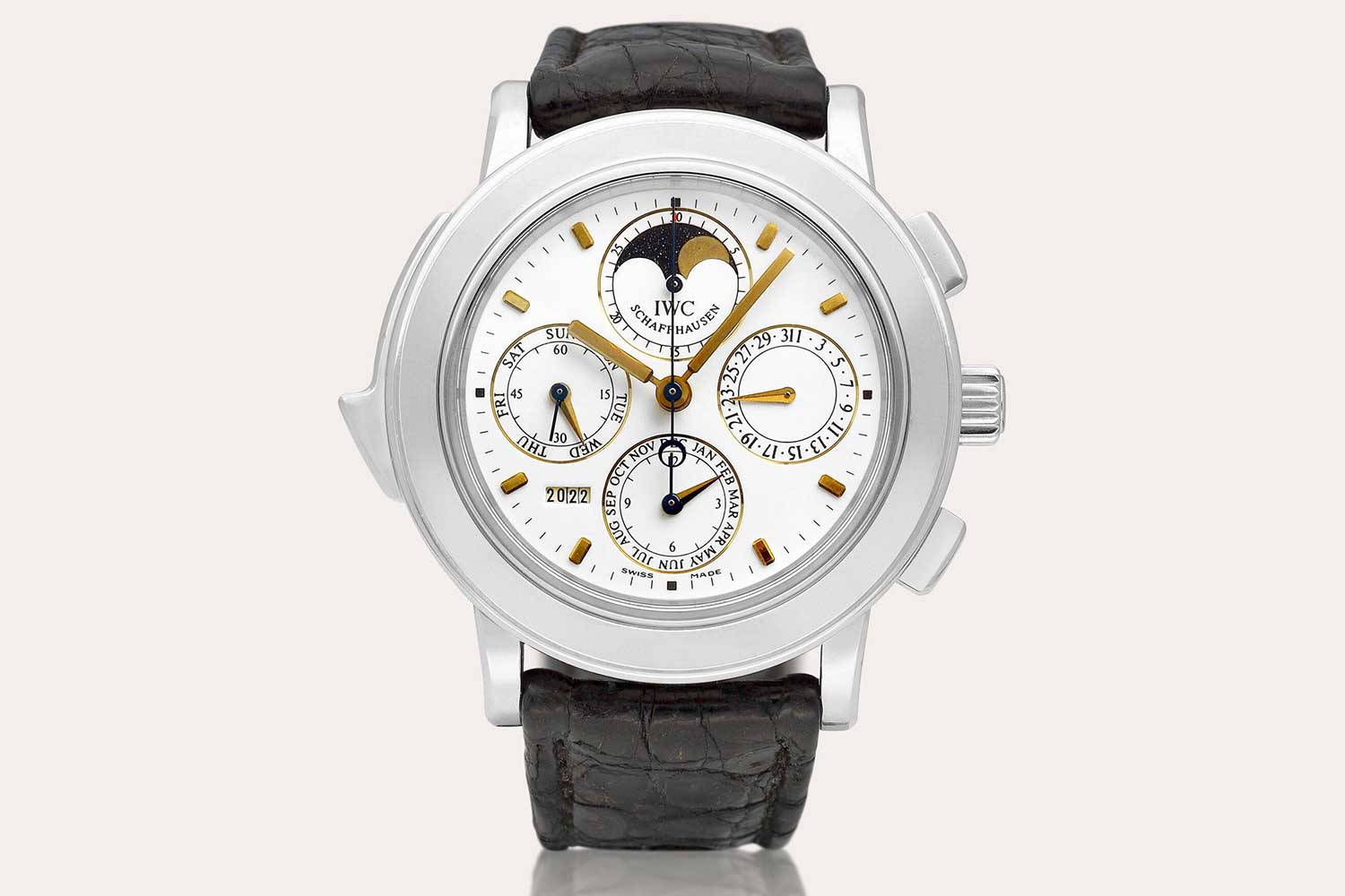 Because their pilot’s watches were adopted by the RAF as well as the Luftwaffe, IWC had become associated with pragmatic tool watches. But when he took over the brand in 1985, Gunther Blumlein, a man considered to be one of the great geniuses in the modern watch industry, wanted to add another dimension to IWC’s abilities. He wanted to demonstrate IWC could enter the world of complicated watches. In 1989 a brand named Blancpain created the 1735 at the time the world’s most complicated wristwatch. It featured a tourbillon, minute repeater, perpetual calendar, split second chronograph. The 1735 was a hugely audacious timepiece that symbolized the renaissance of mechanical watchmaking after the quartz crisis and became a rallying cry to the entire Swiss industry.