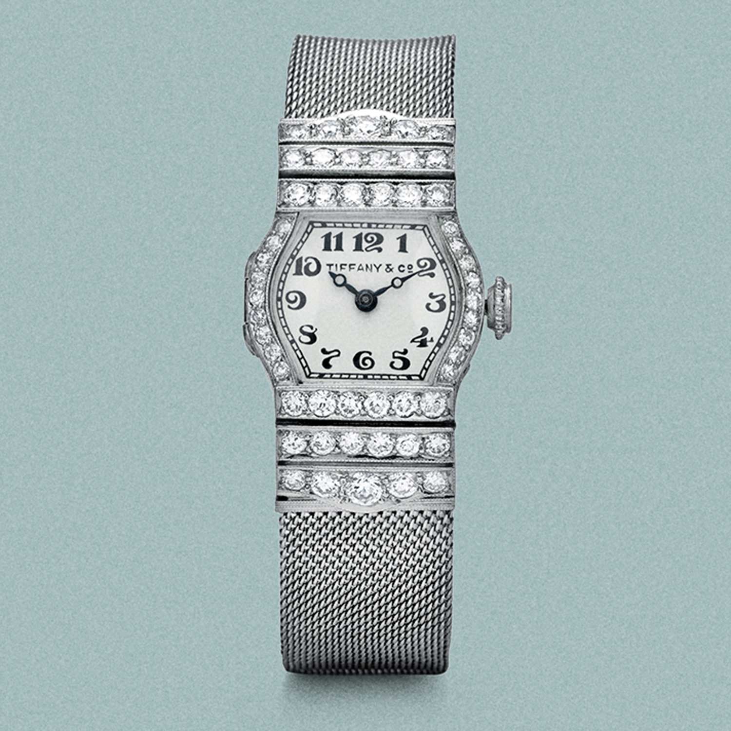 Wristwatch, 1920-1940; Platinum, stainless steel, diamonds, crystal, enamel The Blue Book 1920 devoted two full pages to women's timepieces, reflecting their prominence and Tiffany's innovative approach to their designs. This example houses a C.H. Meylan Watch Company movement