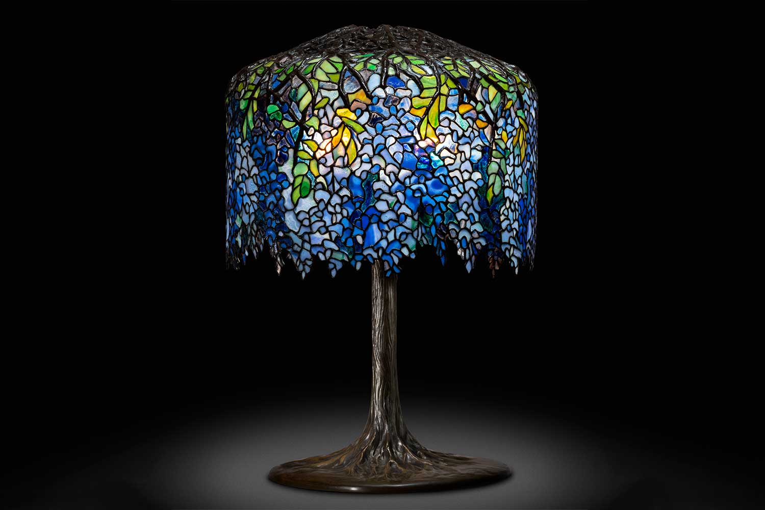 Made of shaped, stained glass and copper wire, and created in the early 1900s by the aptly named ‘Tiffany Girls’ led by Clara Driscoll, the Tiffany lamp was heavily influenced by the Art Nouveau movement. An emphasis on nature led to designs such as Dragonfly, Poppy and Wisteria – the latter of which has now been reinterpreted as a watch dial.