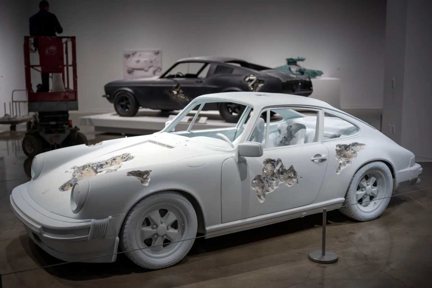 Blue Calcite Eroded Porsche 911 by Daniel Arsham at the Petersen Automotive Museum (Image: Hans Gutknecht/MediaNews Group/Los Angeles Daily News via Getty Images)