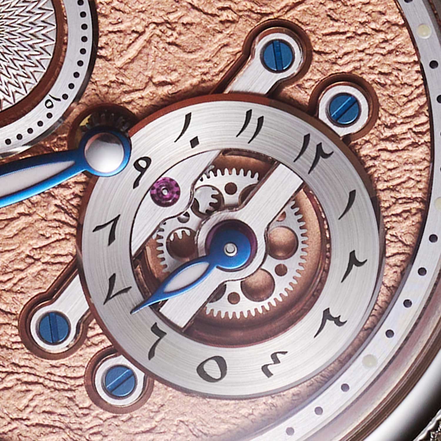 - The Hindi-Arabic numerals on both the hour and small seconds rings