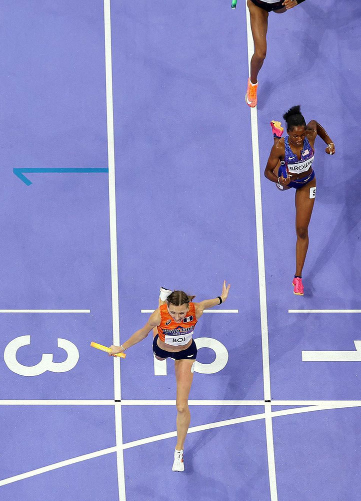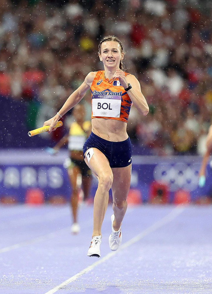 Watching Femke Bol bolt through the last lap of the mixed 4×400m relay was an admirable event to witness. The long legs of the 24-year-old were whirring into speed, becoming almost invisible save for her perfectly formed torso that glided across the track. She was coming up from fourth place and was making up ground at an increased pace. Then she took third, then second, then burst out in first place, crossing the finish line with arms struck out, baton in hand. Then Bol and fellow Dutch team mate Lieke Klaver hugged each other in ecstatic shock, celebrating with restrained belief that they’ve just won themselves their first gold medals in the Paris Olympics. Bol’s final lap in the relay was particularly impressive, timed at a remarkable 47.93 seconds. In her 400-meter hurdles segment, Bol dominated in heat three, clocking 53.38 seconds, the fastest time of the morning and the fastest heat ever recorded in Olympic history.