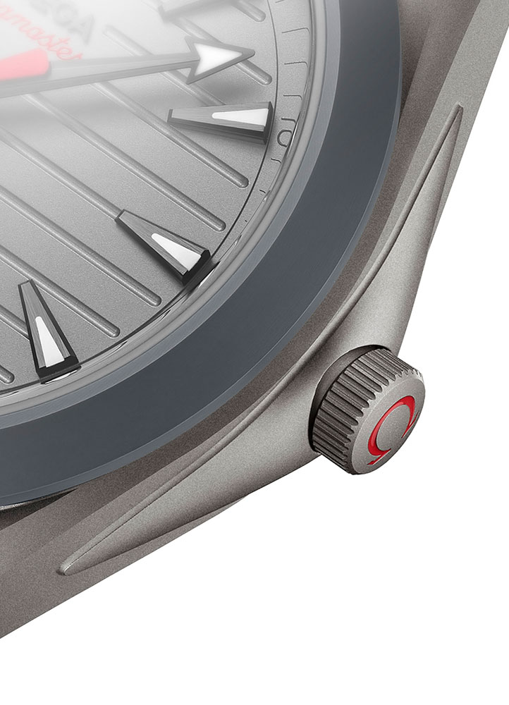 So you can call it overkill, but Omega has adopted this material anyway to fashion one of the most lightweight and durable sports watches in the field. The use of gamma titanium is present in the watch’s case, caseback and telescopic crown, the latter being a space-saving feature that remains recessed into the case when not in use, thus preventing interference with wrist movements.