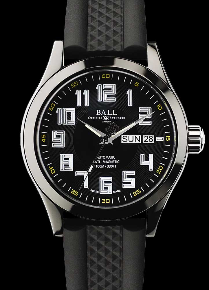 Diamond-like carbon, or DLC, is the costlier, go-to finish that has surpassed basic PVD (see below) in popularity thanks to its far greater durability. It is a type of amorphous carbon material that offers the hardness properties of diamond, and the watch industry found it a near perfect material for applying colour — especially black — to watch cases. A nano-composite coating, its diamond-like properties also include low friction and high corrosion resistance, in addition to the hardness. It should be stressed that it is applied as a physical vapour deposit, so it is actually a type of PVD. Examples include the Ball Engineer Master II DLC, various black (non-ceramic!) Panerais, the HYT H1 Dracula and the Speake-Marin Spirit Mk II DLC.