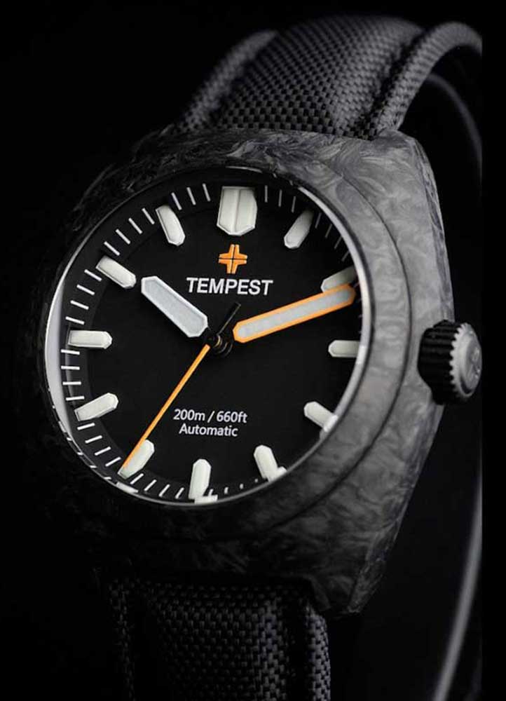 First employed by Audemars Piguet for the Royal Oak Offshore Alinghi Team of 2007, and now offered by Tempest in a model selling for under $1,000, forged carbon is a carbon fibre variant registered to a French aeronautical company, in which high pressure is applied to carbon fibre placed in a mould. The resultant shape is more dense than standard carbon fibre, and thus stronger, while being much lighter than metals.
