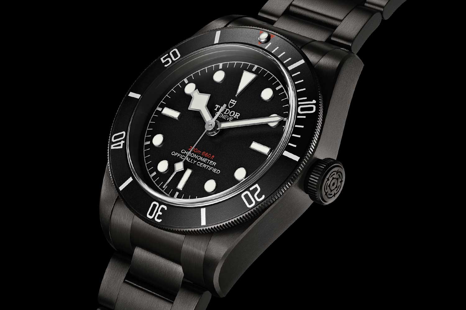 TiC is type of PVD that employs titanium carbide and is the finish chosen by Tudor for its new series of all-black Black Bay Dark. It was preferred, says Tudor, because “it has been found to be very hard — 10 times harder than steel — but it is less brittle than DLC (Diamond Like Carbon). This is important on TUDOR divers’ watches as pressure can distort the case and cause issues with coatings coming free.” Notable, too, is the super-smooth finish.