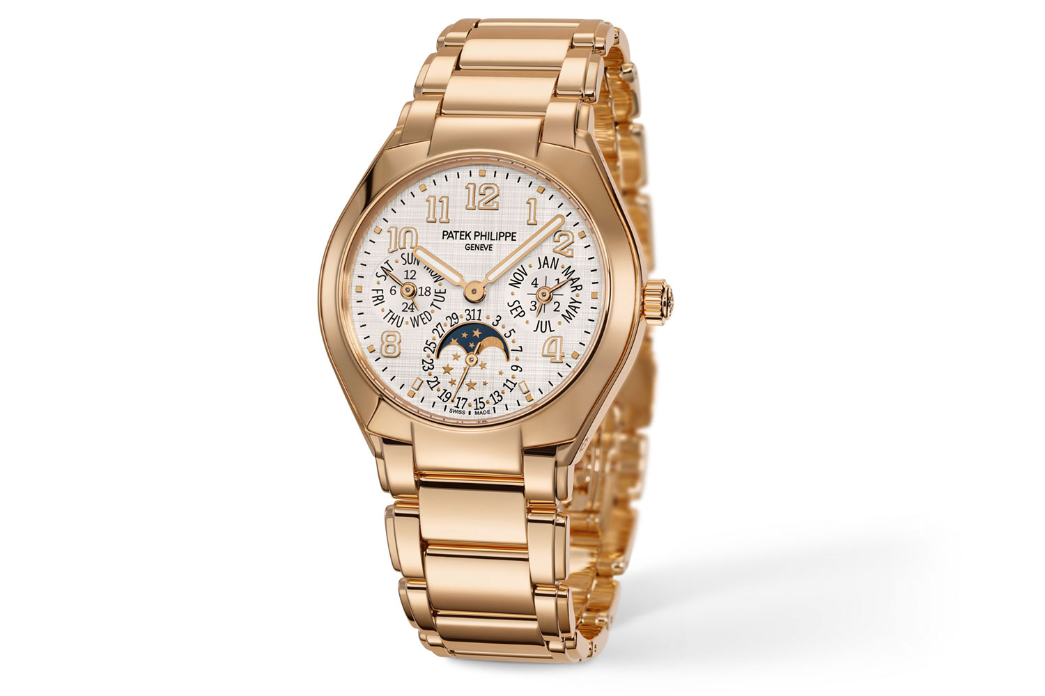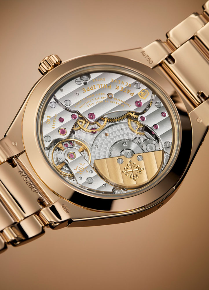The matching gold bracelet features Patek’s innovative lockable adjustment system and a patented fold-over clasp with four independent catches, ensuring both comfort and security.