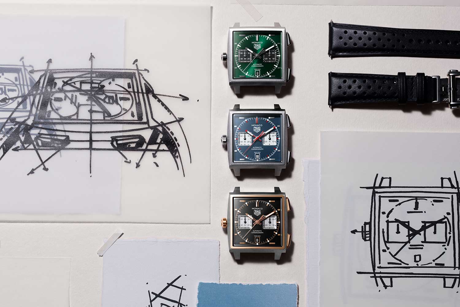 Three colorways are offered for the 2026 novelties — British Racing Green, two-tone black and rose gold, and, last but not least, signature TAG Heuer Monaco Blue, a nod to the OG. Together, they demonstrate how the TAG Heuer Monaco continues to honor its historic design while quietly advancing the mechanics beneath the dial.
