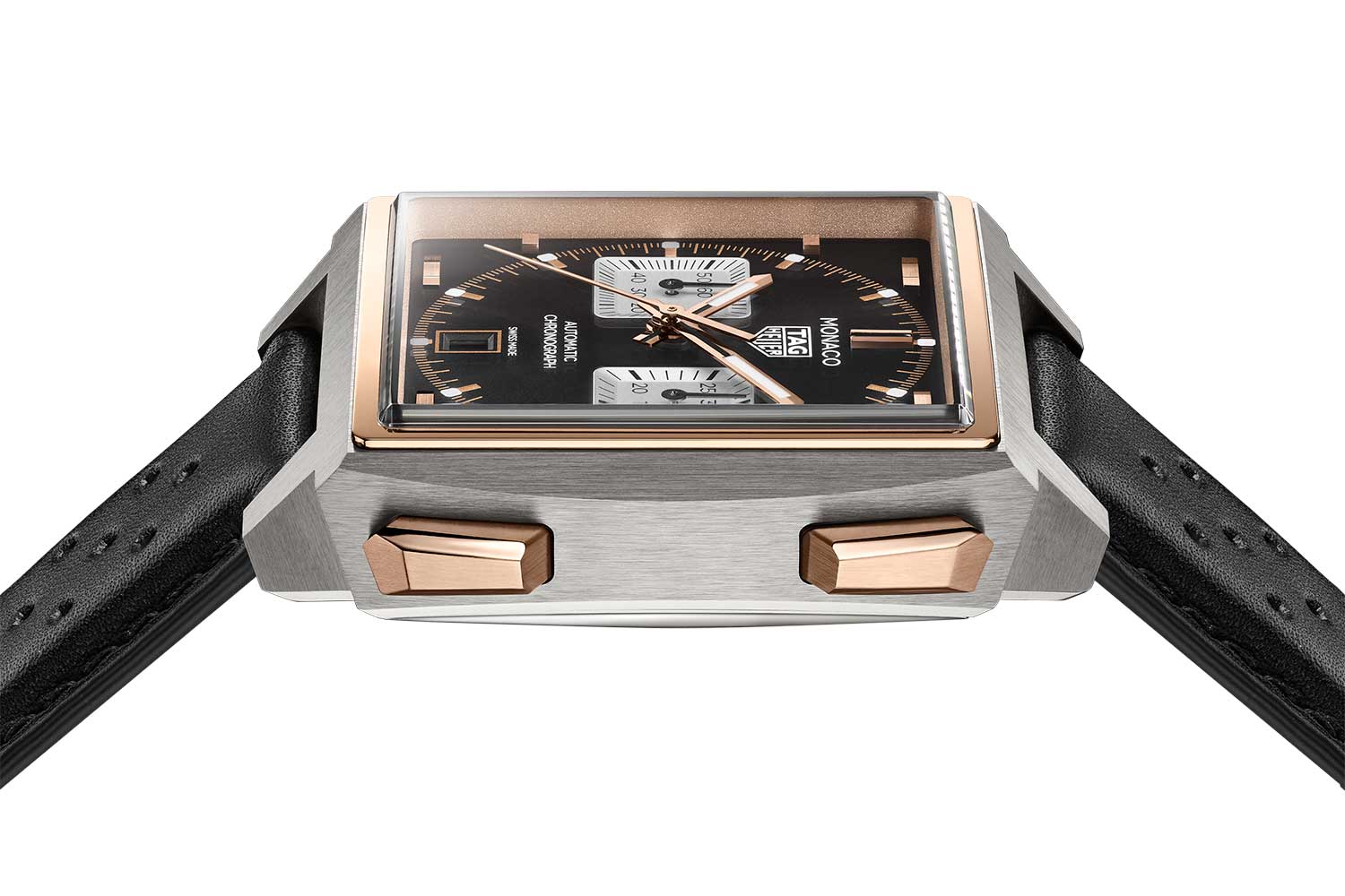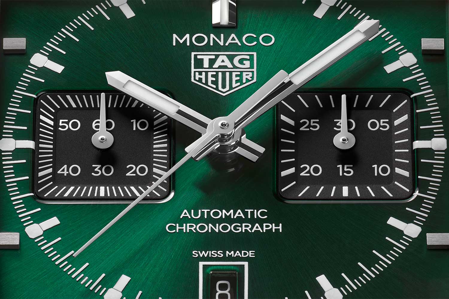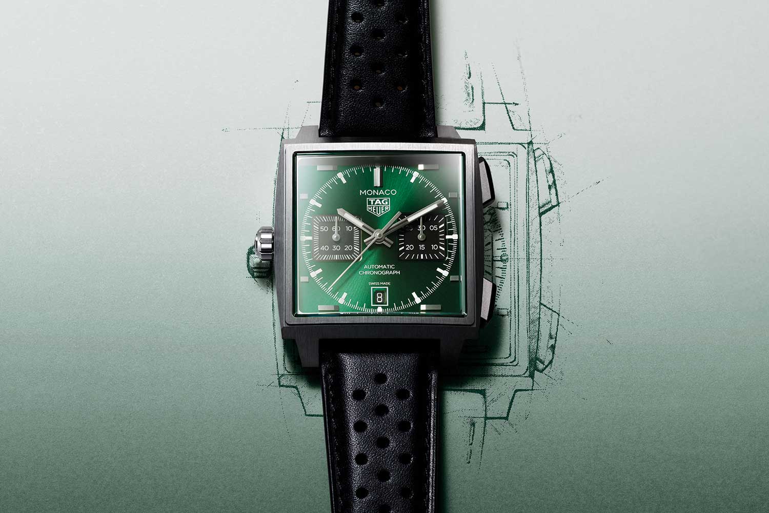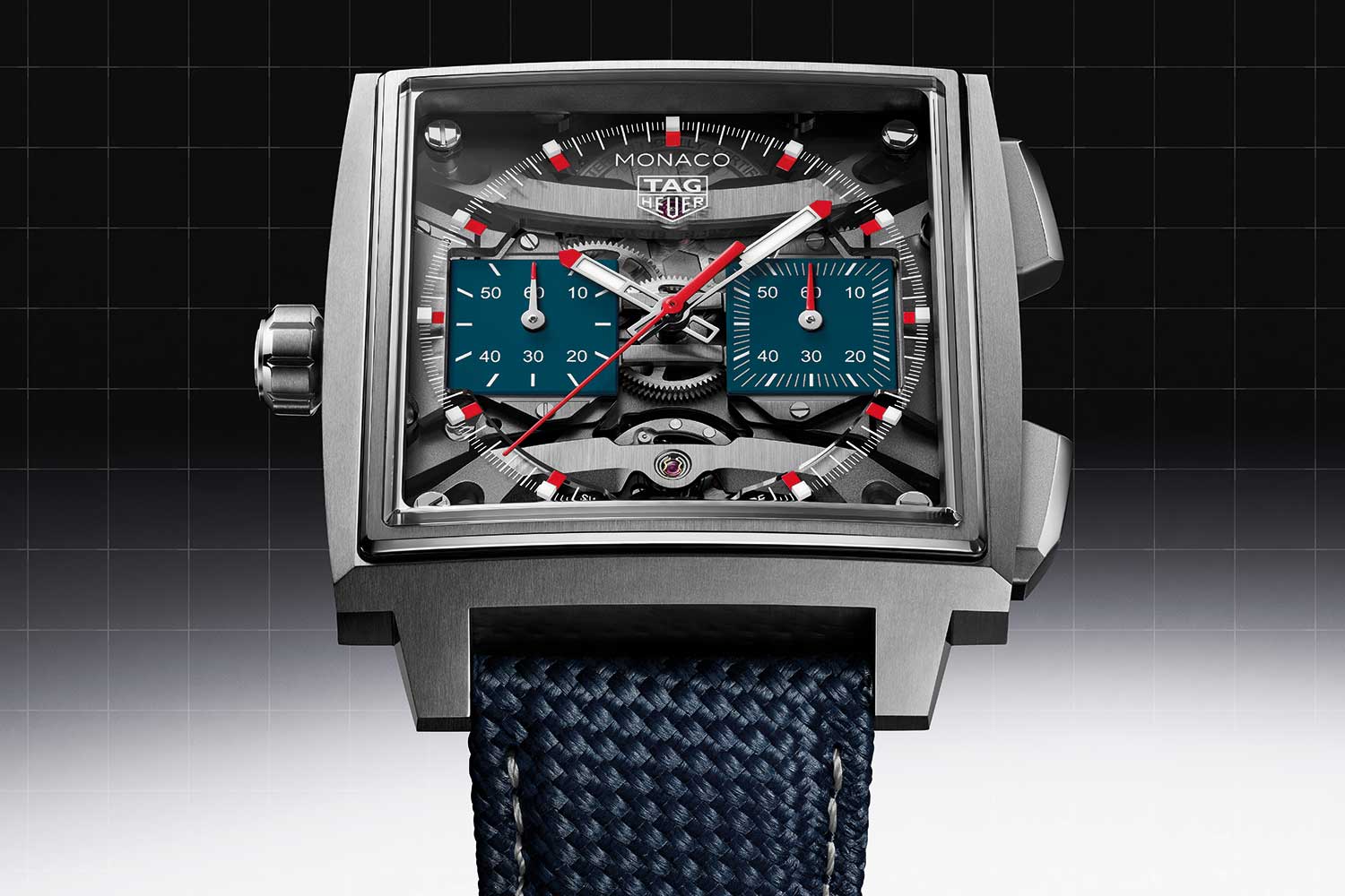This year, TAG Heuer pays tribute to its illustrious racing heritage with three new iterations of the TAG Heuer Monaco Chronograph that draw directly from the original Heuer Monaco Ref 1133B. The most obvious cue is the left-hand crown echoing the hallmark of 1133. The dial layout, too, is a nod to the past with date at 6 o’clock, and two square registers at 3 and 9 o’clock. But in place of the 30-minute and 12-hour subdials in the original, here the 30-minute chronograph counter sits at 3 o’clock and small seconds is told off the indicator at 9 o’clock.