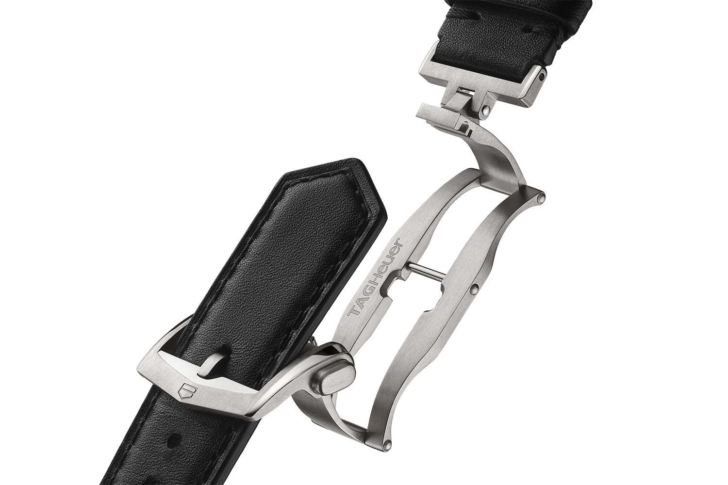 Strap Black perforated calfskin; Grade 5 titanium folding clasp