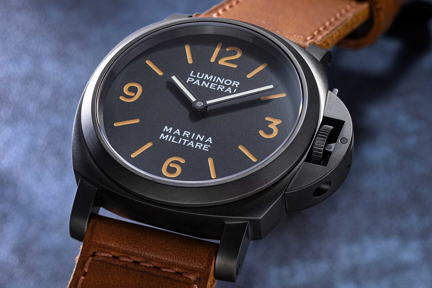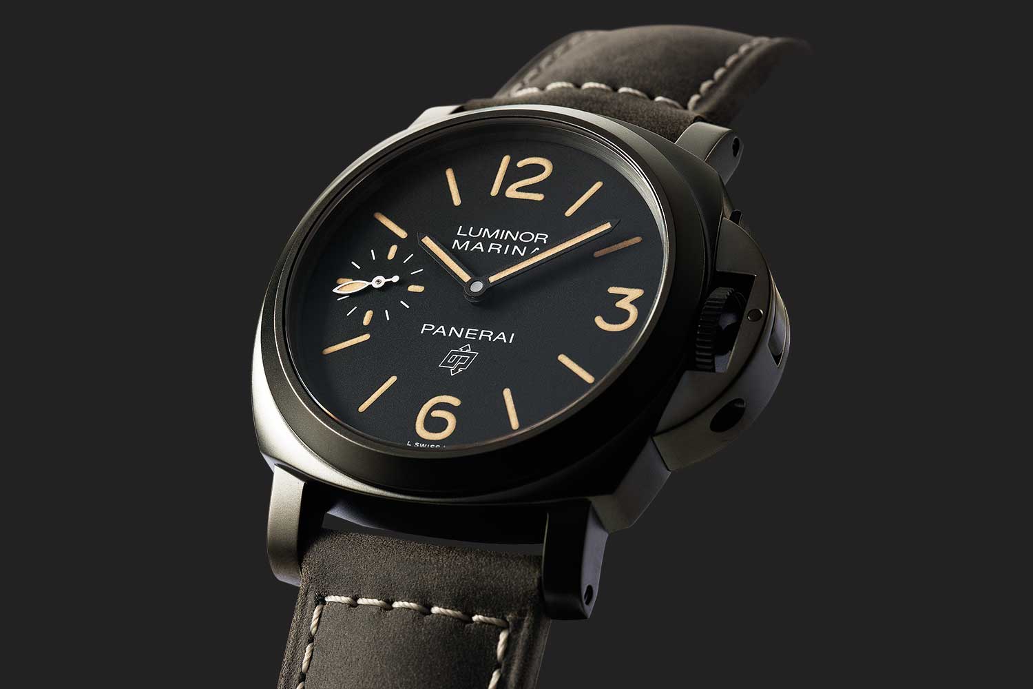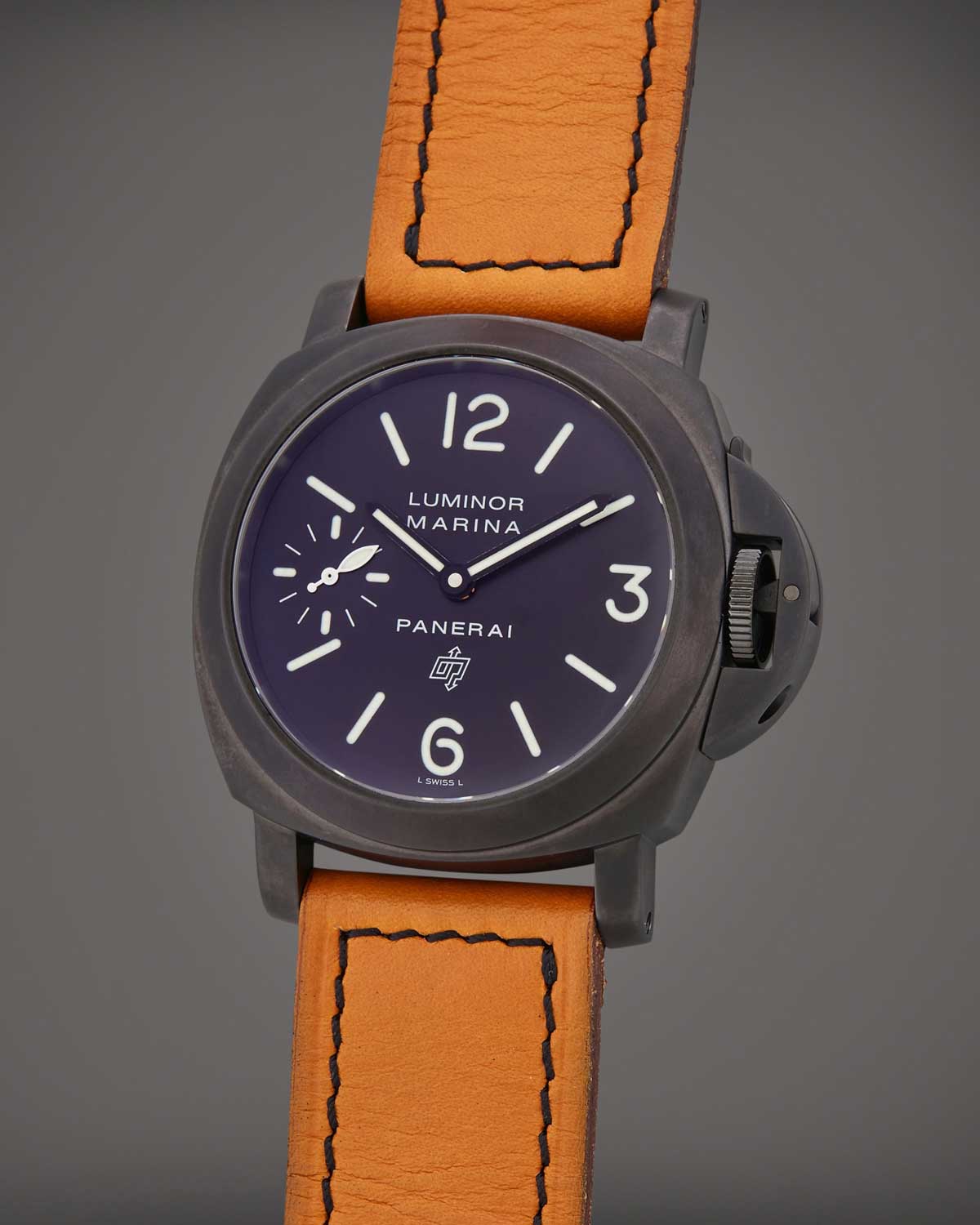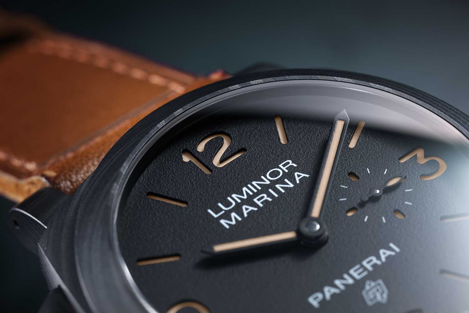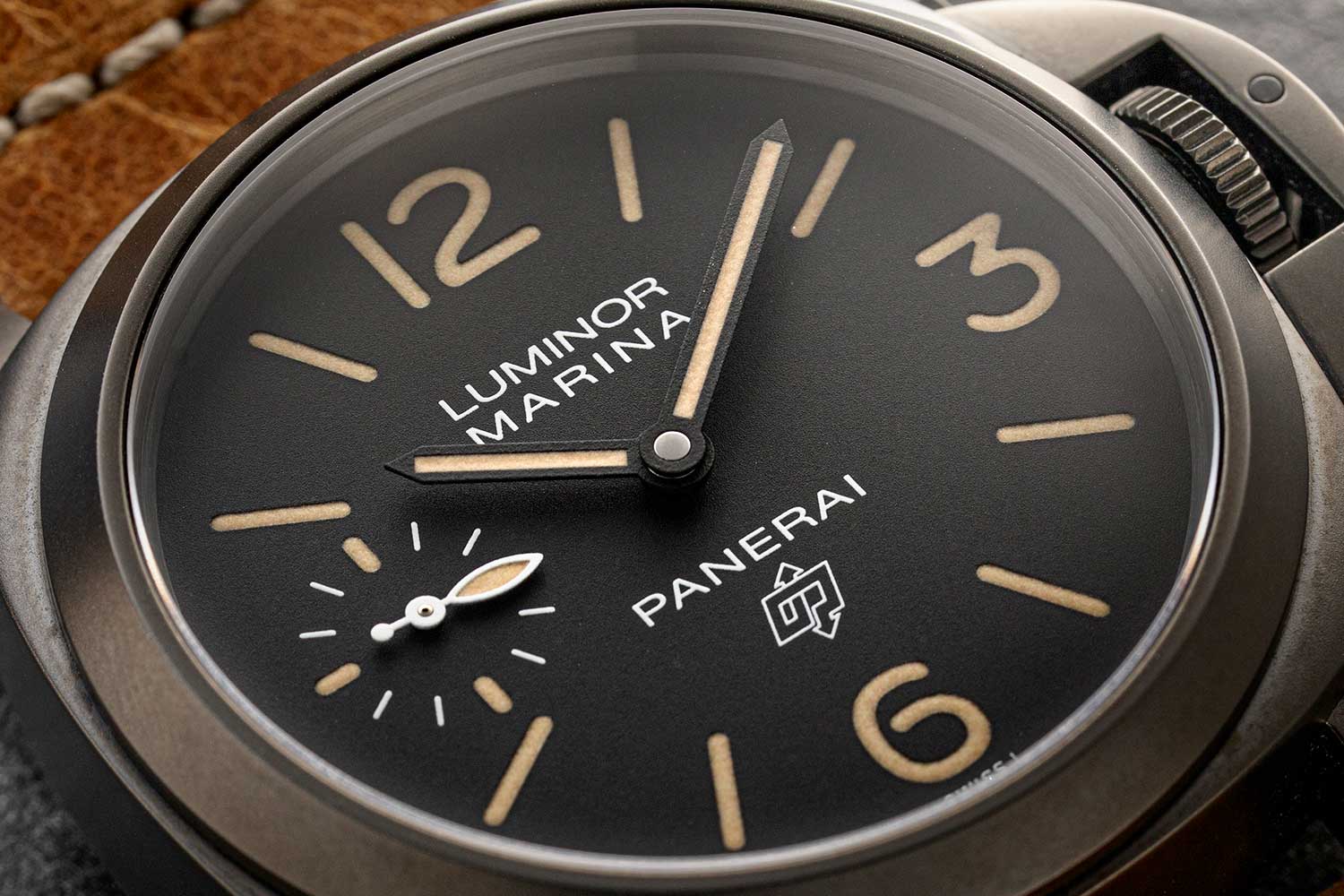 A distinguishing mark of this special Panerai x Revolution 20th Anniversary Luminor Marina Destro Carbotech PAM01708 (©Revolution)