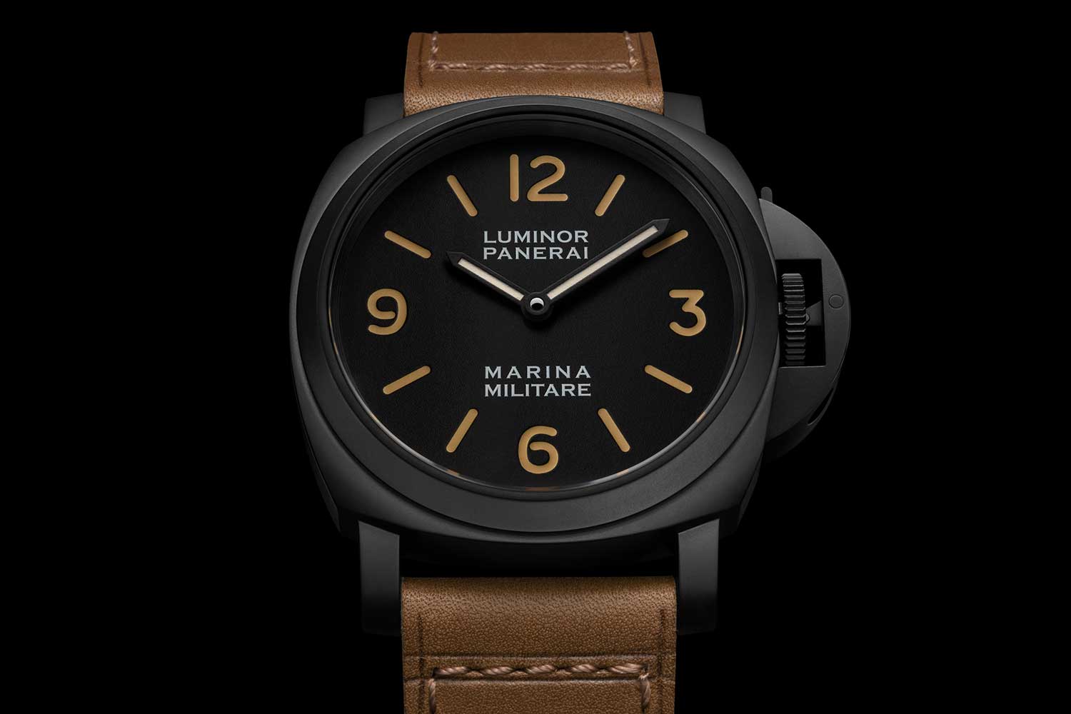 Dial: Matte black; recessed Arabic numerals and hour markers in dark beige Super-LumiNova